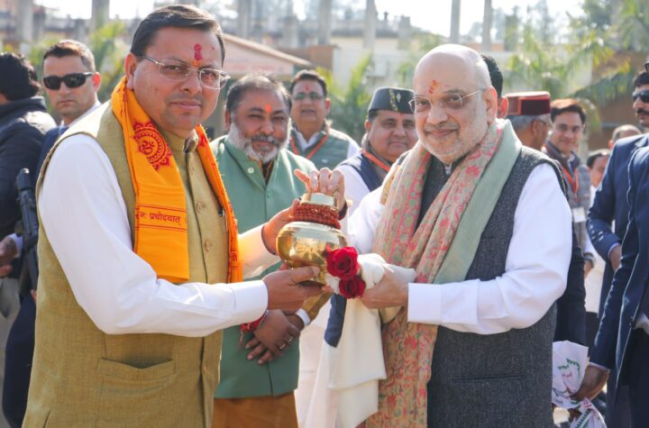 सीएम धामी ने केंद्रीय गृह एवं सहकारिता मंत्री श्री Amit Shah जी के दिल्ली प्रस्थान से पूर्व उन्हें स्मृति चिन्ह के रूप में गंगाजल का कलश भेंट की