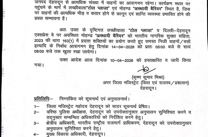 लच्छीवाला टोल प्लाजा व आशा रोडी बैरियर को खुला रखने के डीएम ने जारी किए आदेश