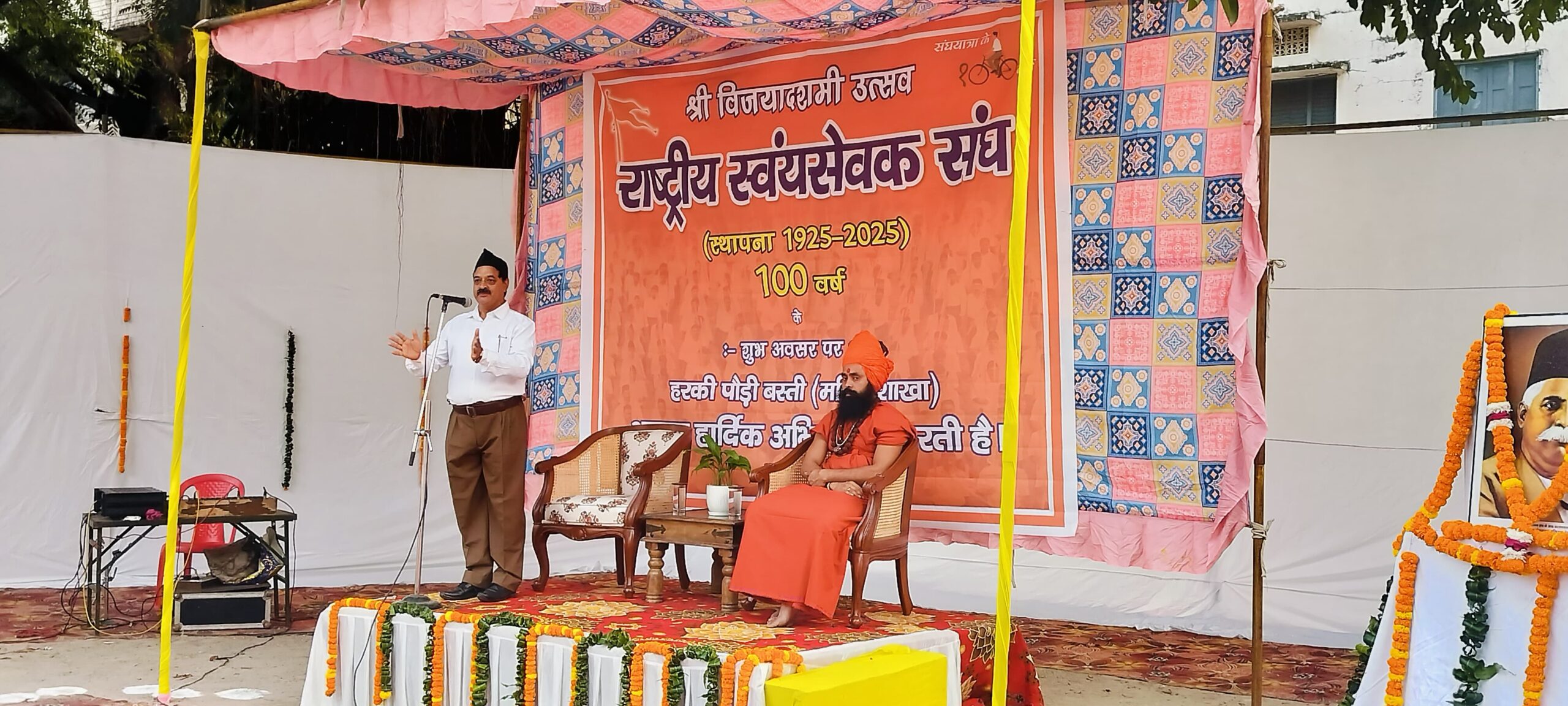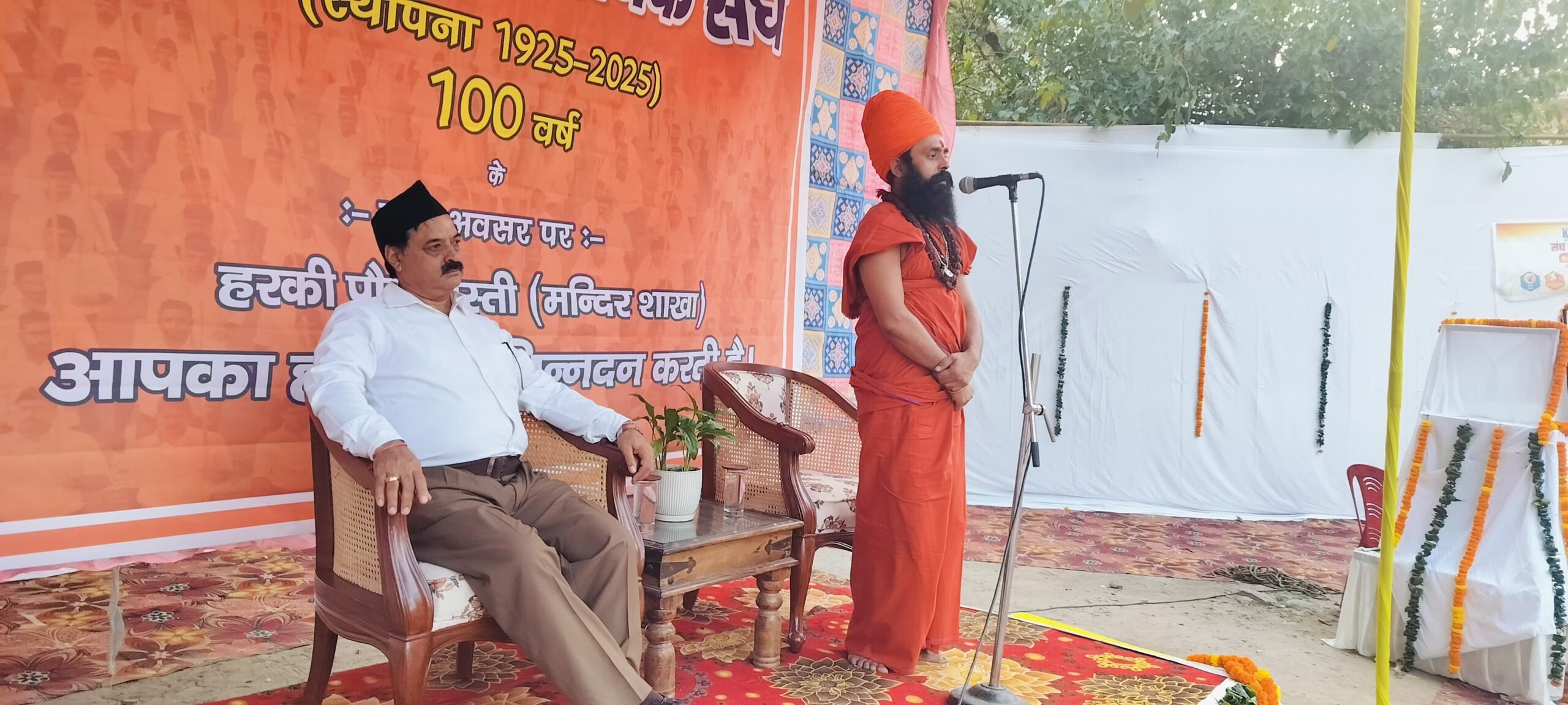 इस अवसर पर हरिद्वार विभाग कार्यवाह लोकेंद्र जी ने संघ की 100 वर्षो की गौरव गाथा पर प्रकाश डालते हुए हरिद्वार मन्दिर शाखा के 83 वर्ष पूर्व होने पर तथा विजयदशमी की शुभकामनाएं दी। उन्होंने कहा कि हम सब सौभाग्यशाली हैं, हम पर प्रभु की कृपा है कि हम स्वयंसेवक बने और संघ के इस संघ के शताब्दी वर्ष को एक उत्सव में बदलने का यह सौभाग्य हम सबको प्राप्त हो रहा है। कई बार विचार आता है कि पूज्य डॉक्टर हेडगवार जी ने विजयदशमी के दिन ही राष्ट्रीय स्वयंसेवक संघ की स्थापना की थी इसलिए विजयदशमी का यह दिन हम सबके लिए बहुत महत्वपूर्ण हो जाता है। विजयदशमी प्रतीक है बुराई पर अच्छाई की जीत अधर्म पर धर्म की जीत का। दशहरे पर रावण को जलते हुए हमने देखा है और रावण का जो शाब्दिक अर्थ है कि जितने भी बुराइयां हैं जितने भी अत्याचार हैं जितने भी दुराचार हैं उन पर का समूचा नशा कर विजय प्राप्त करना है। उन्होंने बताया कि इसी तरह संघ भी 100 वर्षो से समाज मे फैली बुराइयों के खिलाफ दृढ़ता से खड़ा है। संघ ने 100 वर्ष पूर्ण होने पर समाज परिवर्तन के लिए पंच परिवर्तन का संकल्प लिया है। इसके अंतर्गत सामाजिक समरसता, नागरिक कर्तव्यों के पालन, स्वाधारित जीवनशैली, पर्यावरण संरक्षण और आर्थिक आत्मनिर्भरता को बढ़ावा देने का प्रयास किया जाएगा।