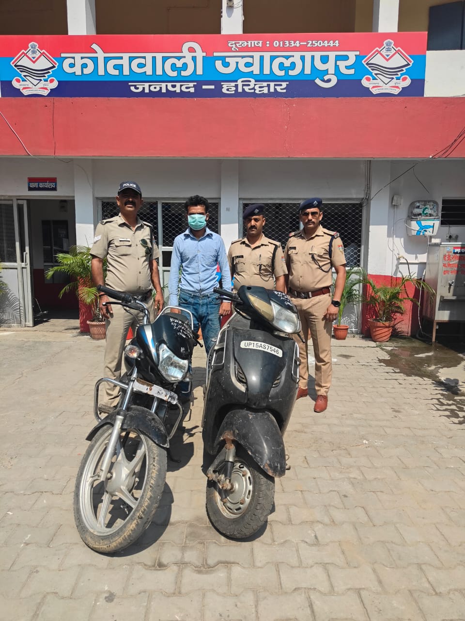 *ज्वालापुर पुलिस ने 01 शातिर चोर को चोरी की स्कूटी व मोटरसाइकिल सहित दबोचा*