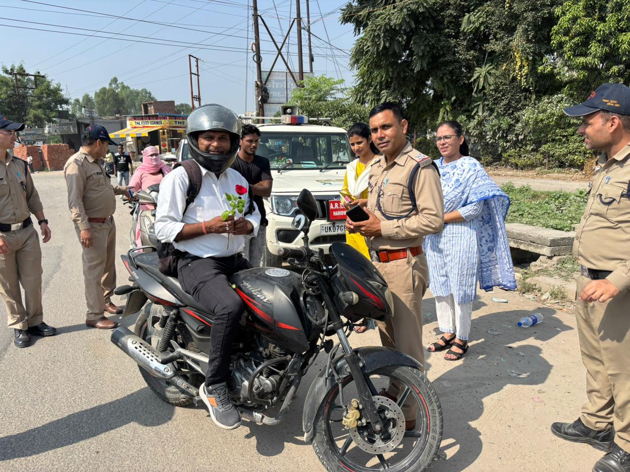 उन्होंने यह भी अवगत कराया कि हेलमेट लगाने वाले लोगों को परिवहन टीम द्वारा फूल तथा चॉकलेट देकर प्रोत्साहित किया।