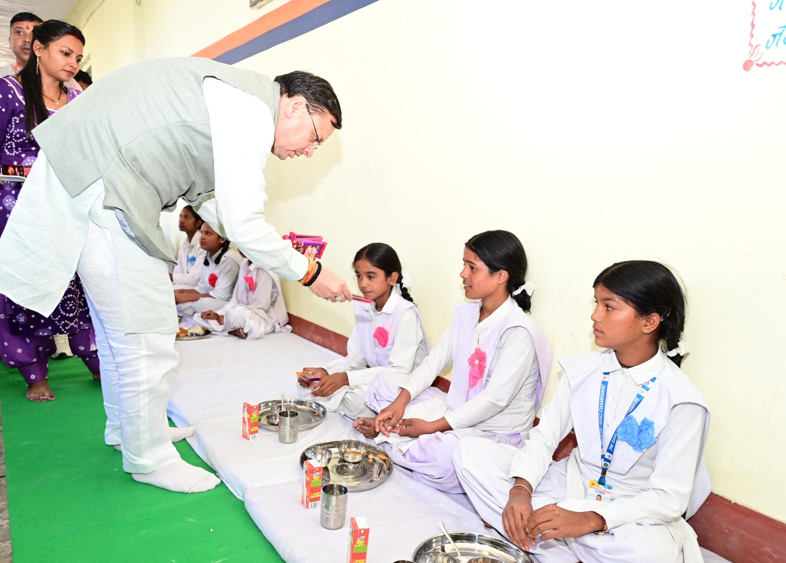 इस अवसर पर मुख्यमंत्री ने विद्यालय में अध्यनरत बालिकाओं के साथ बैठकर भोजन भी किया। और उनसे विभिन्न विषयों पर चर्चा की एवं पढ़ाई के संबंध में फीडबैक भी लिया।