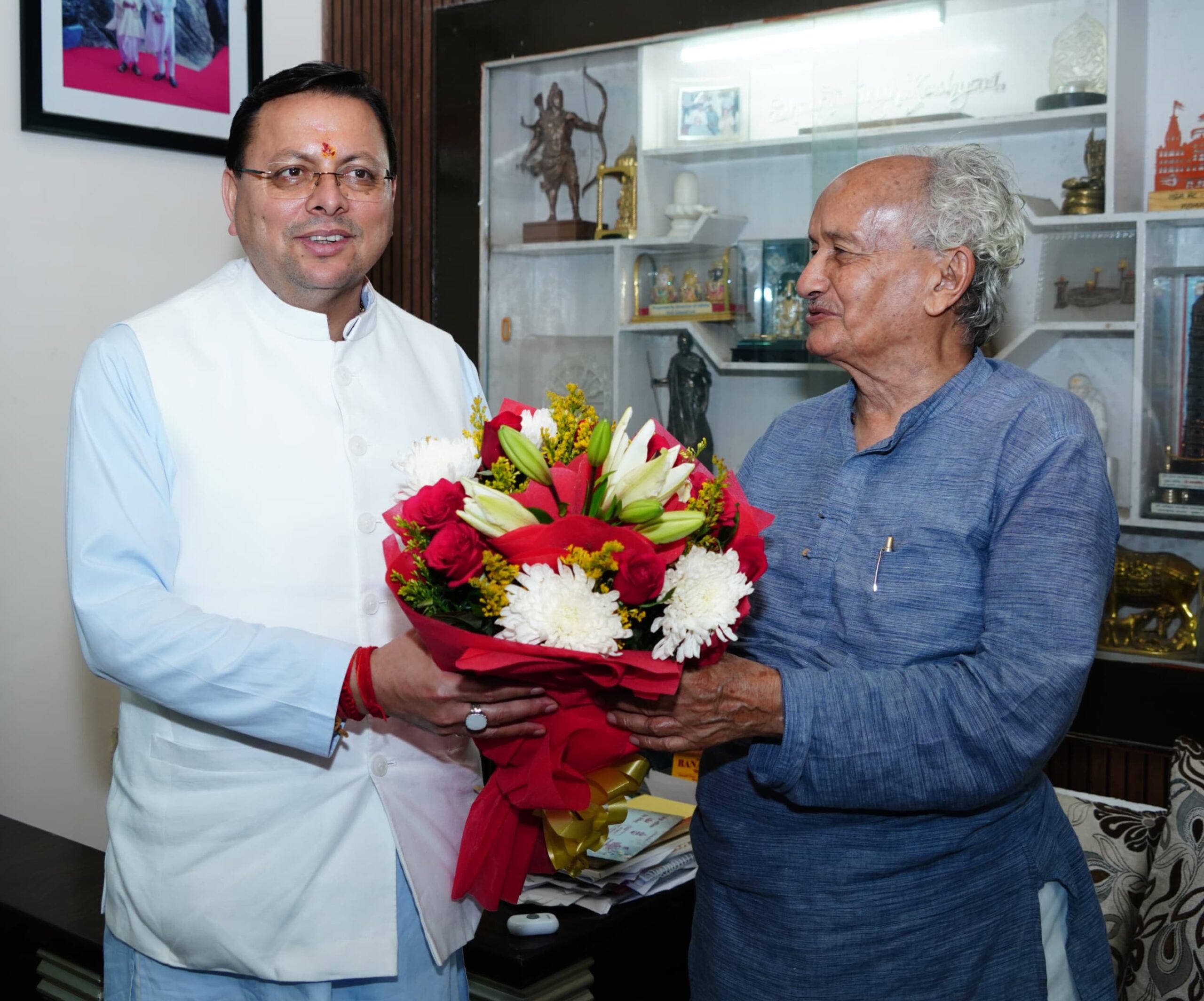 मुख्यमंत्री ने आज पूर्व मुख्यमंत्री एवं महाराष्ट्र के पूर्व राज्यपाल श्री भगत सिंह कोशियारी के डिफेन्स कॉलोनी स्थित निवास पर पहुंचकर उन्हें धनतेरस और दीपावली की बधाइयां एवं शुभकामनाएं दीं