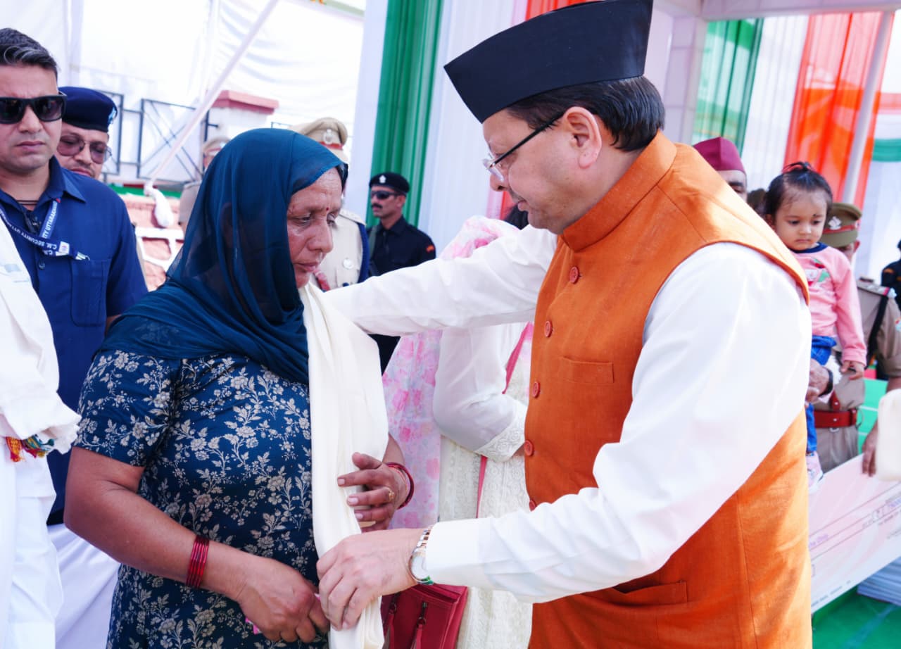 मुख्यमंत्री श्री पुष्कर सिंह धामी ने मंगलवार को पुलिस लाइन्स, देहरादून में पुलिस स्मृति दिवस के अवसर पर आयोजित कार्यक्रम में प्रतिभाग किया। इस दौरान मुख्यमंत्री ने पुलिस एवं अर्द्ध सैन्य बलों के शहीदों को पुष्प चक्र अर्पित कर श्रद्धांजलि दी। मुख्यमंत्री ने शहीद पुलिस जवानों के परिजनों को भी सम्मानित किया।इस अवसर पर मुख्यमंत्री ने राज्य स्थापना की 25वीं वर्षगांठ के सुअवसर पर उत्तराखण्ड पुलिस के समस्त कार्मिकों को एक विशेष रजत जयंती पदक प्रदान किए जाने, आगामी 3 वर्षों में पुलिस कर्मियों के आवासीय भवनों के निर्माण हेतु प्रतिवर्ष 100 करोड़ रुपए की धनराशि दी जाने, विभिन्न कल्याणकारी योजनाओं के क्रियान्वयन हेतु पुलिस कल्याण निधि के अन्तर्गत वर्तमान में प्रावधानित ढाई करोड़ रुपए की धनराशि को पुनरीक्षित करते हुए आगामी एक वर्ष के लिए साढ़े चार करोड़ रुपए किए जाने एवं भवाली, नैनीताल, ढालमल्ला, काण्डा, बागेश्वर, नैनीडांडा, धुमाकोट, पौड़ी, घनसाली, टिहरी, सतपुली और पौड़ी में एसडीआरएफ के जवानों हेतु 5 बैरकों का निर्माण कराए जाने की घोषणा की।