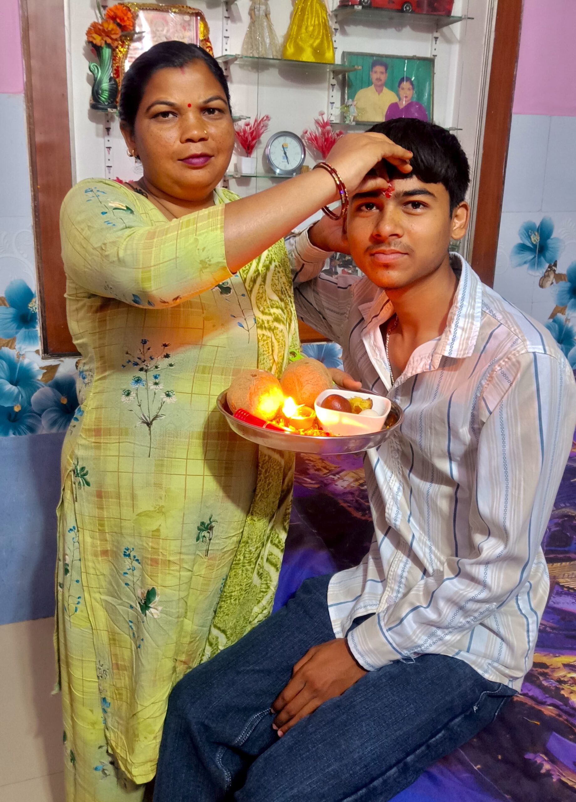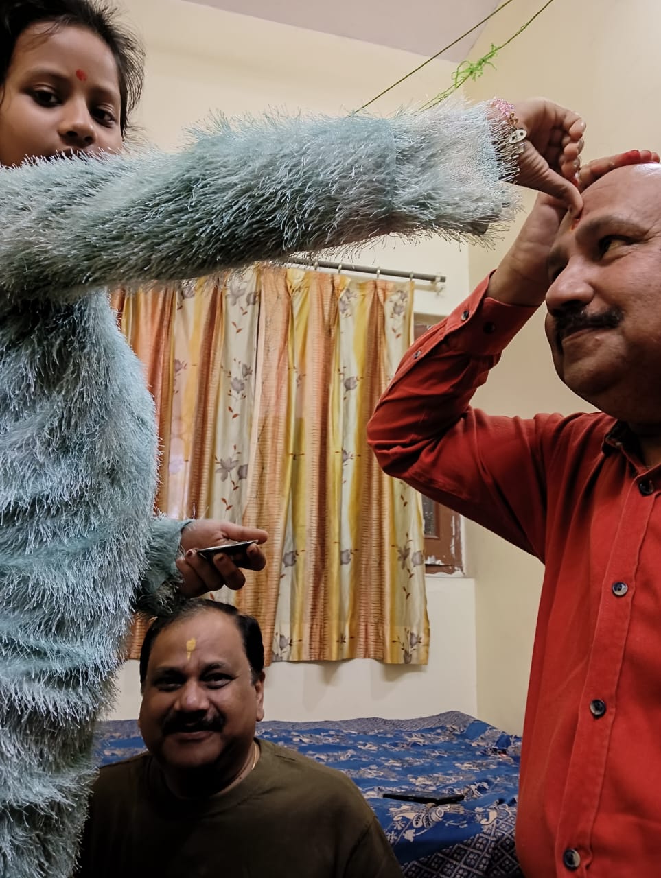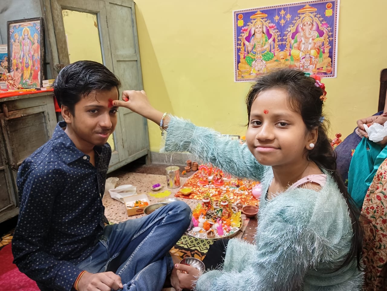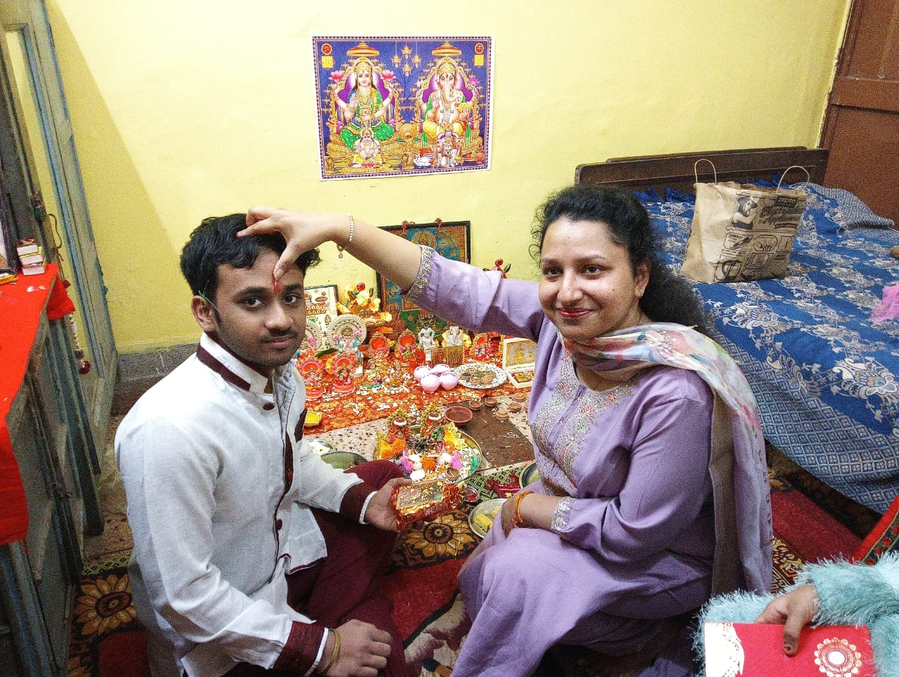 भाई दूज पर बहनों ने अपने भाई के तिलक किया और लंबी आयु की कामना की । भाइयों ने बहनों को गिफ्ट दिया।