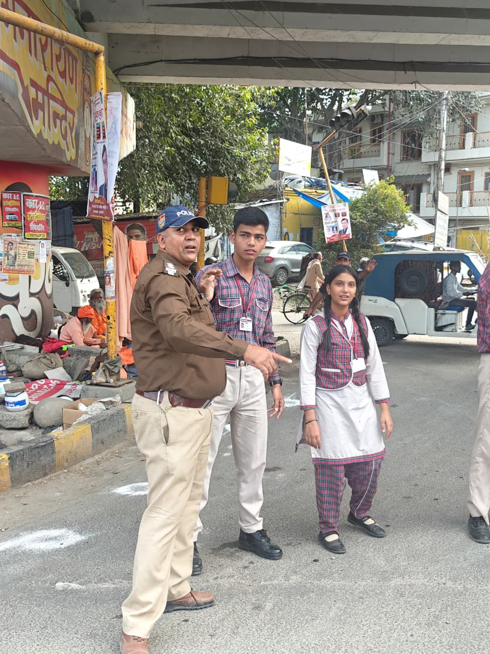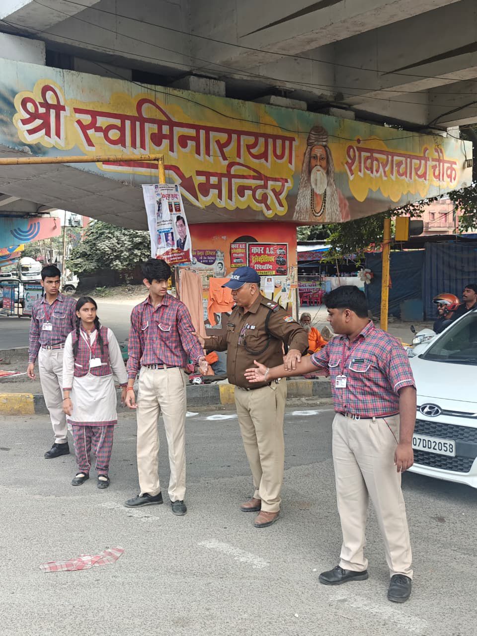 कार्यक्रम में यातायात पुलिस द्वारा छात्रों एवं छात्राओं को यातायात नियमों एवं सुरक्षा उपायों की जानकारी प्रदान की गई।