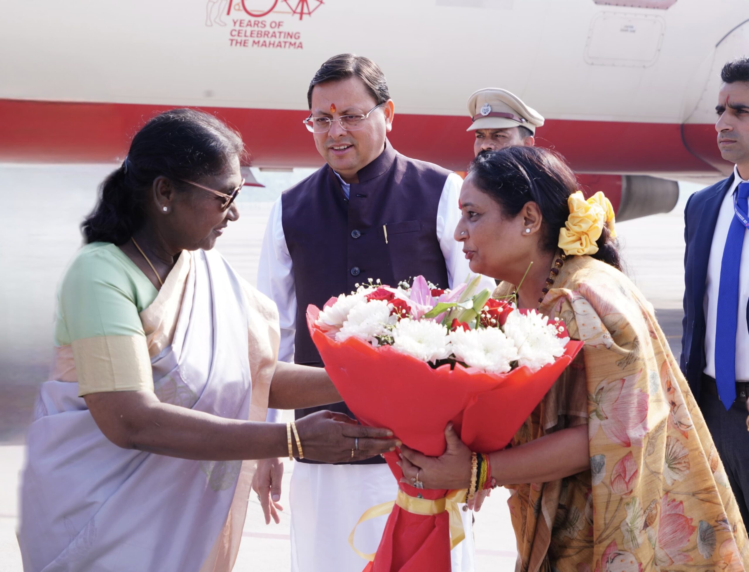 राष्ट्रपति श्रीमती मुर्मु के जौलीग्रांट एयरपोर्ट आगमन पर राज्यपाल, मुख्यमंत्री , विधानसभा अध्यक्ष श्रीमती भूषण, मंत्रीगणों, विधायकगणों और अन्य जनप्रतिनिधियों ने उनका स्वागत एवं अभिनंदन किया