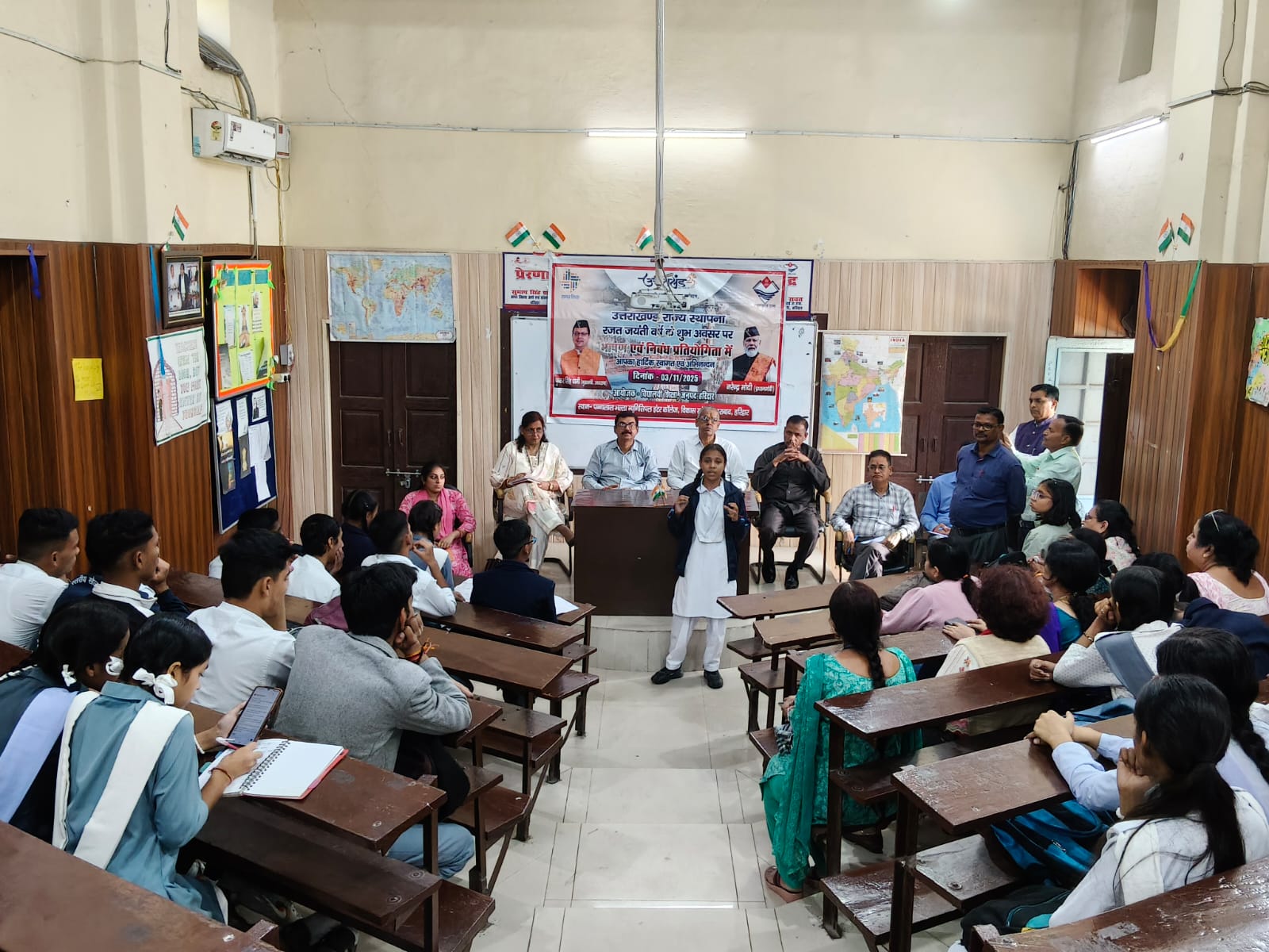 हरिद्वार ।- सोमवार को उत्तराखंड राज्य स्थापना के रजत जयंती वर्ष के उपलक्ष में पन्नालाल भल्ला म्युनिसिपल इंटर कॉलेज,बहादराबाद में विद्यालयी शिक्षा जनपद हरिद्वार के तत्वाधान में निबंध , पेंटिंग एवं भाषण प्रतियोगिता का आयोजन किया गया। कार्यक्रम का शुभारंभ विद्यालय के प्रधानाचार्य श्री ओमप्रकाश गौनियाल जी द्वारा उत्तराखंड के गौरवमयी इतिहास एवं 2047 के विकसित भारत में उत्तराखंड के योगदान के विषय पर उद्बोधन के साथ प्रारंभ हुआ,