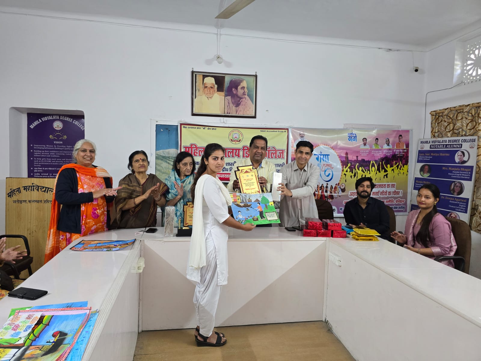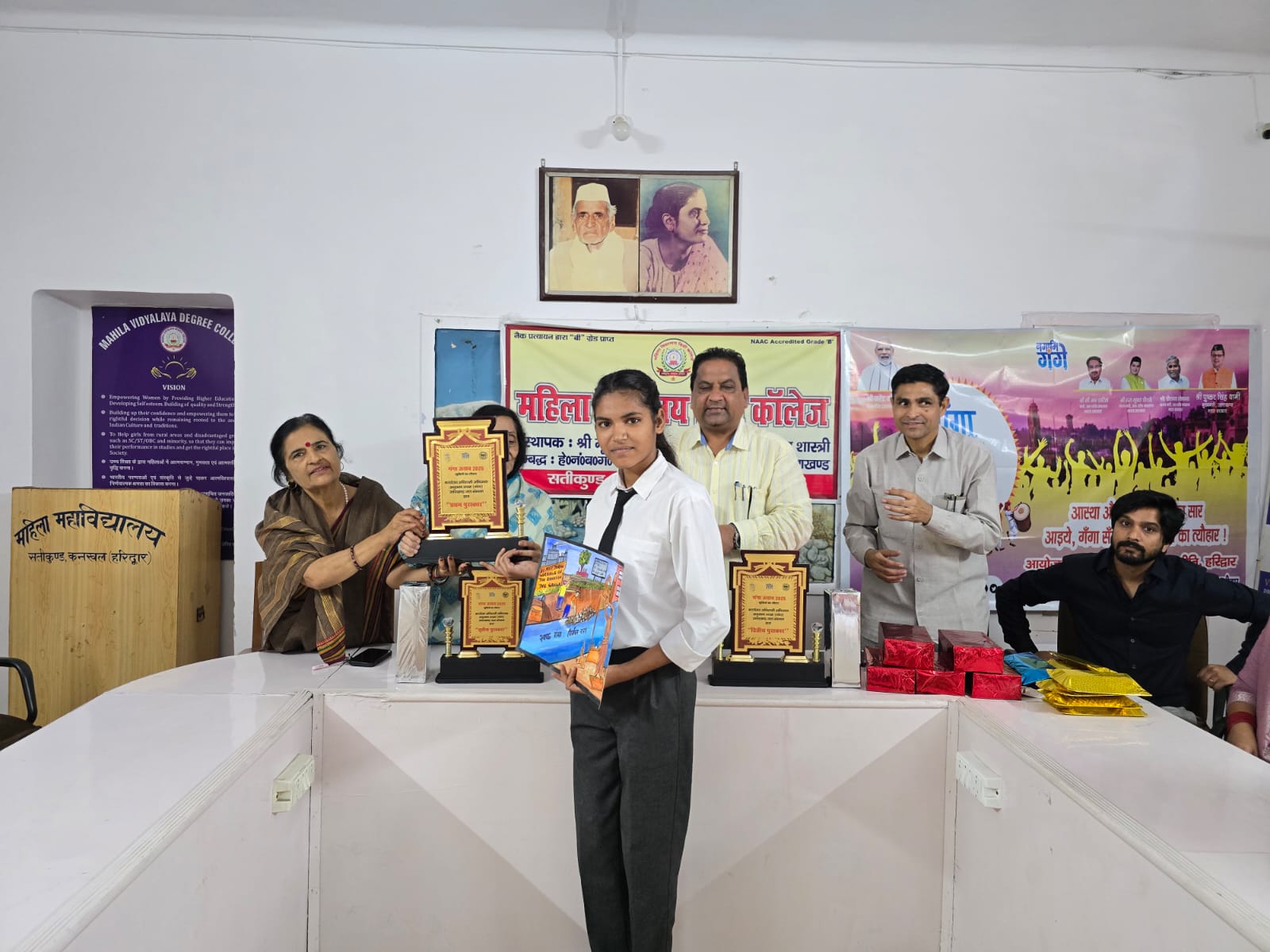 सान्तवना पुरस्कार जाहनवी बी०ए) प्रथम सेमेस्टर, नसरा बी०ए० प्रथम सेमेस्टर, सुषमा बी०ए० पंचम सेमेस्टर, सजना बी०ए० प्रथम सेमेस्टर, और कावेरी बी०ए० प्रथम सेमेस्टर को दिया गया। नमामि गंगे और उत्तराखंड जल संस्थान हरिदवार के सदस्यों ने कार्यकम के आयोजन में सहभागिता के लिए प्राचार्या एवं महाविद्यालय का आभार व्यक्त किया।