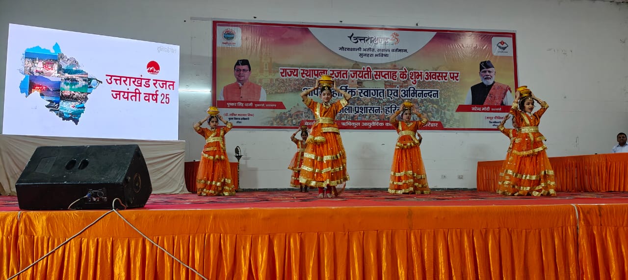 हरिद्वार।   राज्य स्थापना रजत जयन्ती सप्ताह के शुभ अवसर पर ऋषिकुल आयुर्वेदिक कॉलेज सभागार में आज के सांस्कृतिक कार्यक्रम कौशिक आर्ट्स एंड क्रिएशन के कलाकारों के नाम रहा।