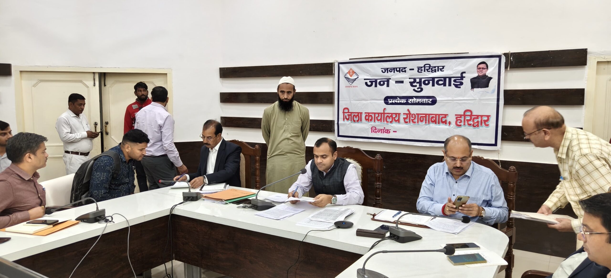 *हरिद्वार । जनपदवासियों की समस्याओं का त्वरित निराकरण करने के उद्देश्य से जिलाधिकारी मयूर दीक्षित की अध्यक्षता में प्रत्येक सोमवार को जिला कार्यालय सभागार में जन सुनवाई कार्यक्रम आयोजित किया जा रहा है, जिसमें विभिन्न विभागों से संबंधित 72 शिकायतकर्ताओं ने अपनी समस्याएं दर्ज कराई गई जिसमें 31 समस्याओं का मौके पर निराकरण किया गया शेष समस्याओं हेतु संबंधित विभागों को तत्काल कार्यवाही हेतु प्रेषित किया गया।