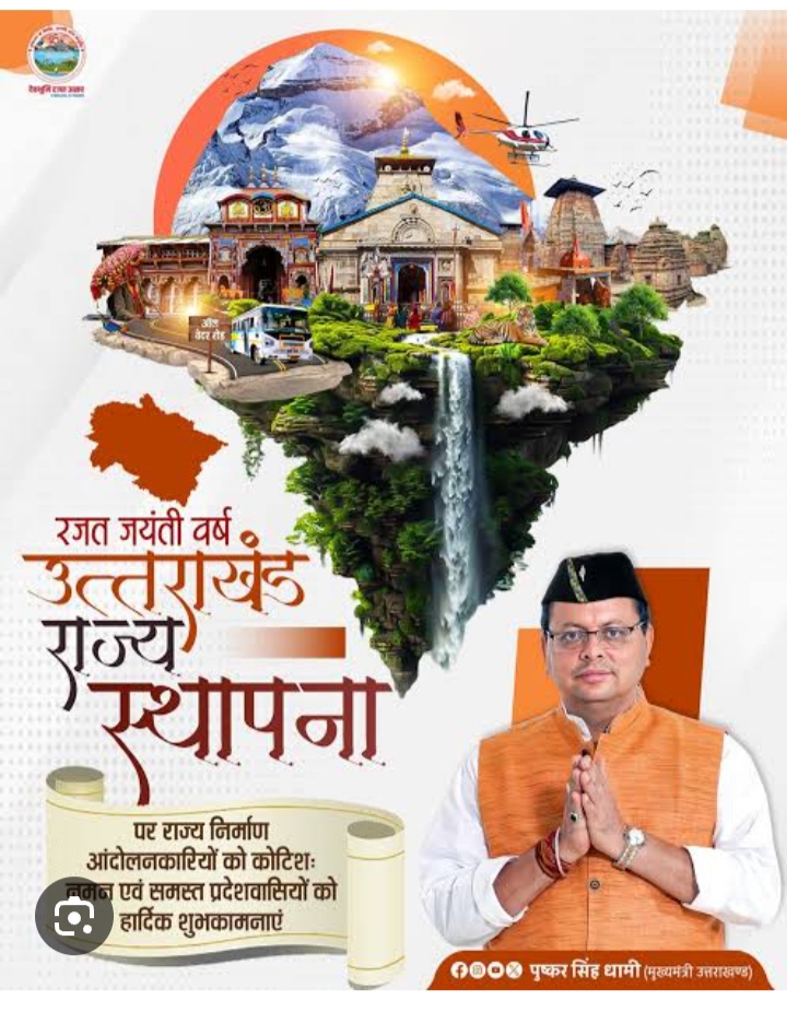 मुख्यमंत्री श्री पुष्कर सिंह धामी के नेतृत्व में उत्तराखंड सिविल एविएशन डेवलपमेंट अथॉरिटी (UCADA) द्वारा आज उत्तराखंड राज्य गठन के 25 वर्ष पूरे होने के उपलक्ष्य में एक भव्य ड्रोन लाइट शो का आयोजन किया गया। इस कार्यक्रम में उत्तराखंड की समृद्ध सांस्कृतिक विरासत, आध्यात्मिक पहचान और प्राकृतिक सौंदर्य को प्रदर्शित किया गया। साथ ही, यह आयोजन राज्य में नवाचारपूर्ण पर्यटन प्रोत्साहन और उभरती हवाई तकनीक की दिशा में एक नई पहल के रूप में भी देखा गया।