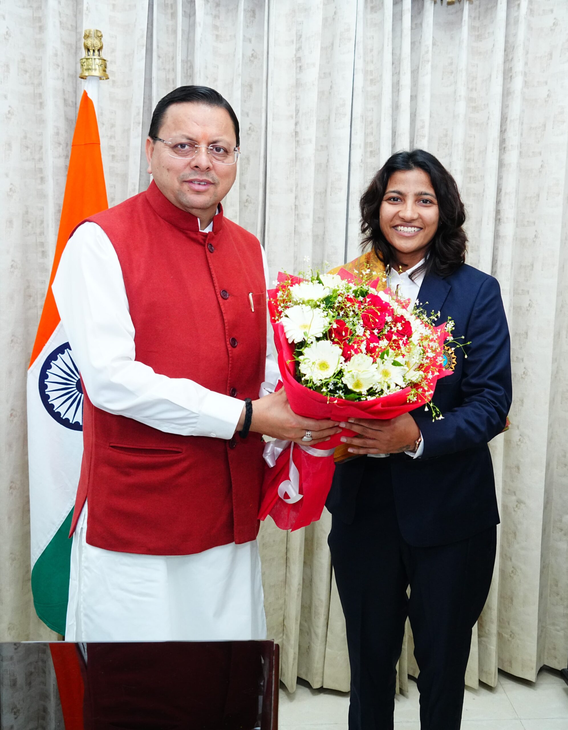 महिला विश्व कप विजेता क्रिकेटर स्नेह राणा ने की मुख्यमंत्री श्री पुष्कर सिंह धामी से शिष्टाचार भेंट