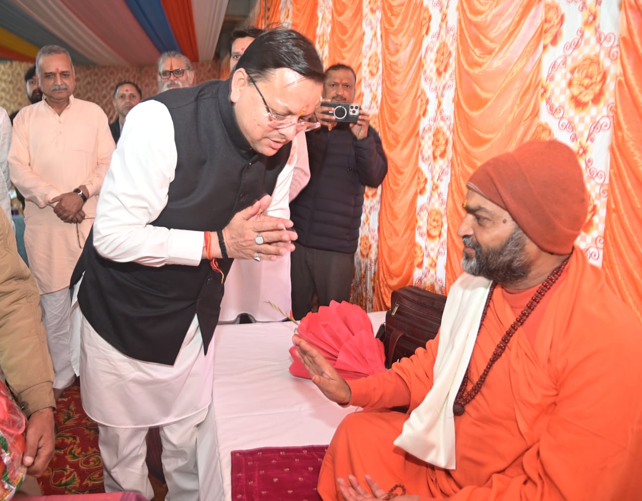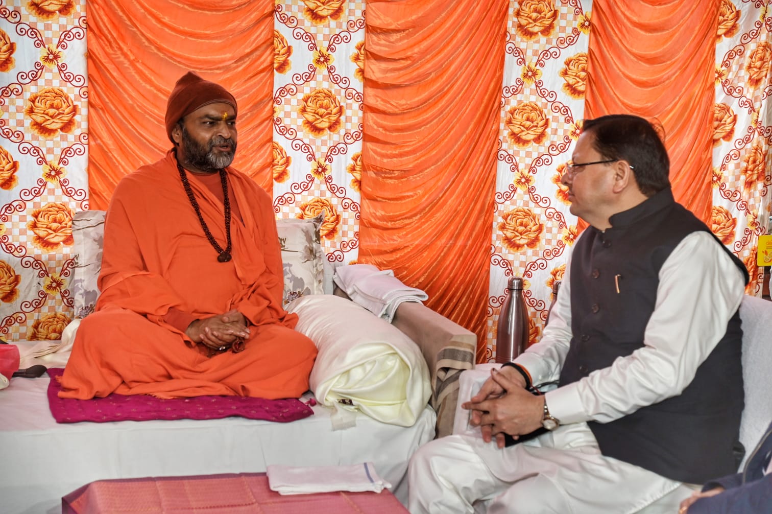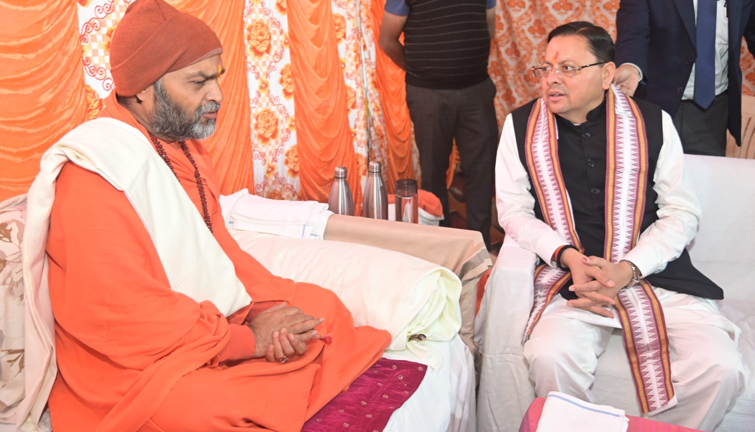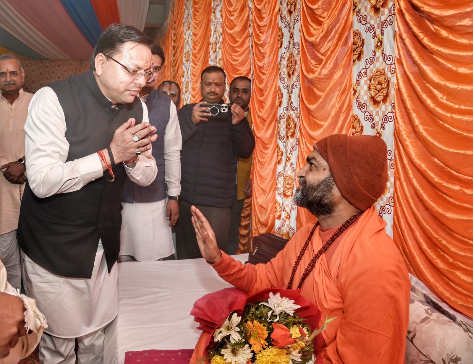 *मुख्यमंत्री पुष्कर सिंह धामी ने महामंडलेश्वर उत्तम स्वामी को पुष्पगुच्छ एवं अंगवस्त्र भेंटकर किया सम्मान।*