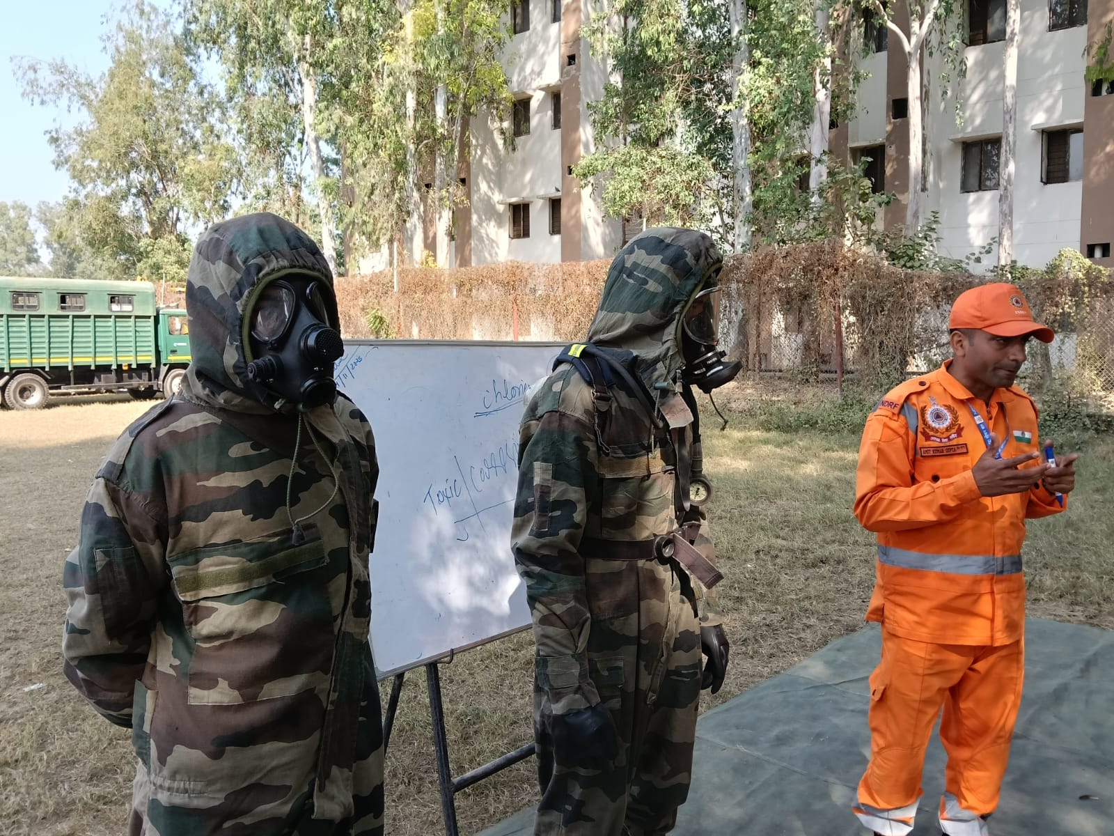 उन्होंने कहा कि प्रथम सत्र में NDRF के सब-इंस्पेक्टर अजय भाटिया, अमित गुप्ता, अतुल भंडारी एवं सूरज धौनी ने कैडेट्स को रासायनिक आपदाओं के प्रकार, उनके संभावित प्रभाव, सुरक्षा उपायों तथा त्वरित प्रतिक्रिया की प्रक्रिया के बारे में विस्तारपूर्वक जानकारी प्रदान की। टीम ने सुरक्षा उपकरणों के उपयोग, डिकंटैमिनेशन प्रक्रिया, सुरक्षित निकासी तथा आपदा की स्थिति में अपनाए जाने वाले महत्त्वपूर्ण विषयों पर व्यावहारिक प्रशिक्षण दिया।