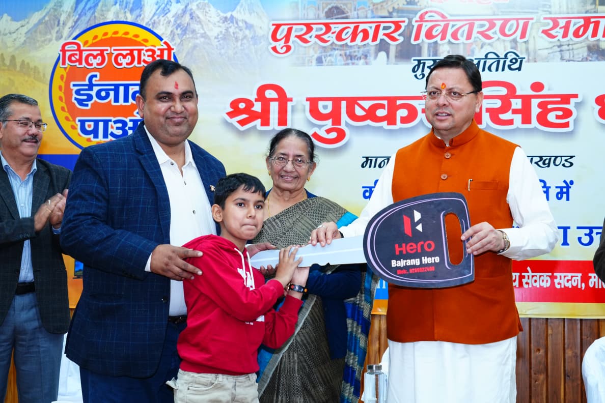 मुख्यमंत्री पुष्कर सिंह धामी ने किया ’’बिल लाओ-इनाम पाओ’’ योजना के विजेताओं को पुरस्कृत