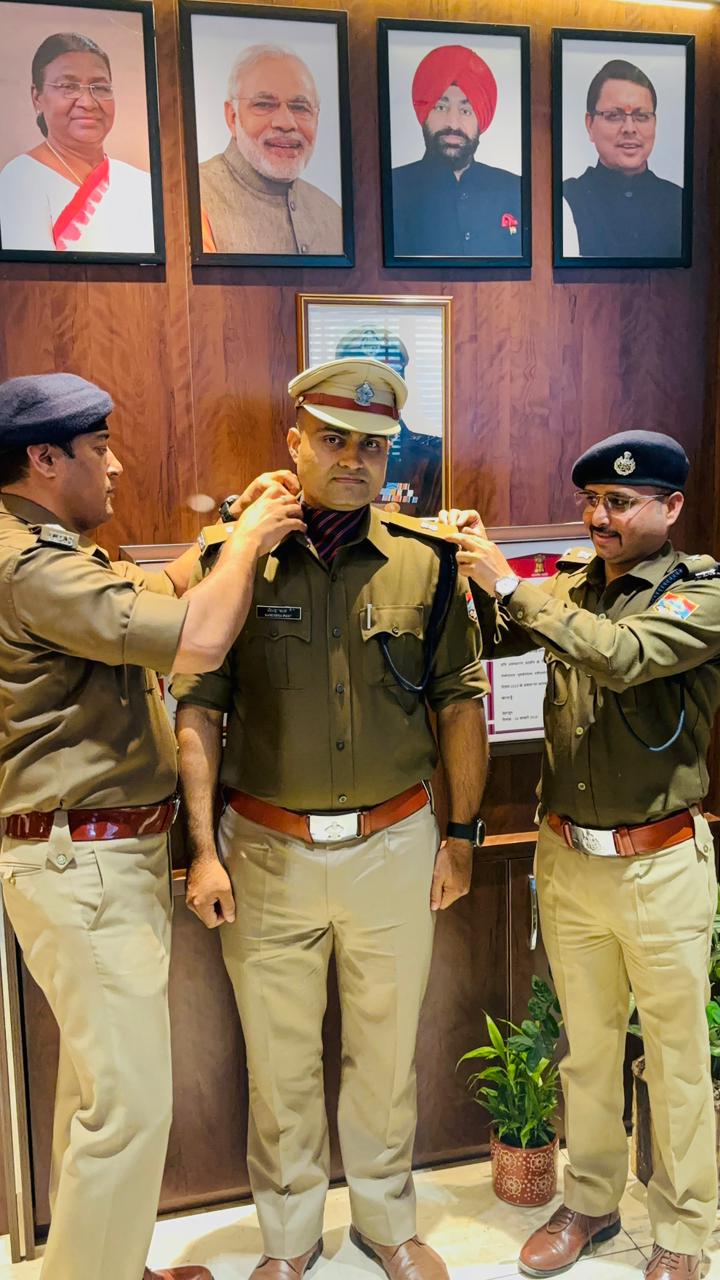 *वरिष्ठ पुलिस अधीक्षक हरिद्वार द्वारा दोनों अधिकारियों के कंधों पर अशोक स्तम्भ पहना कर किया गया अलंकृत*