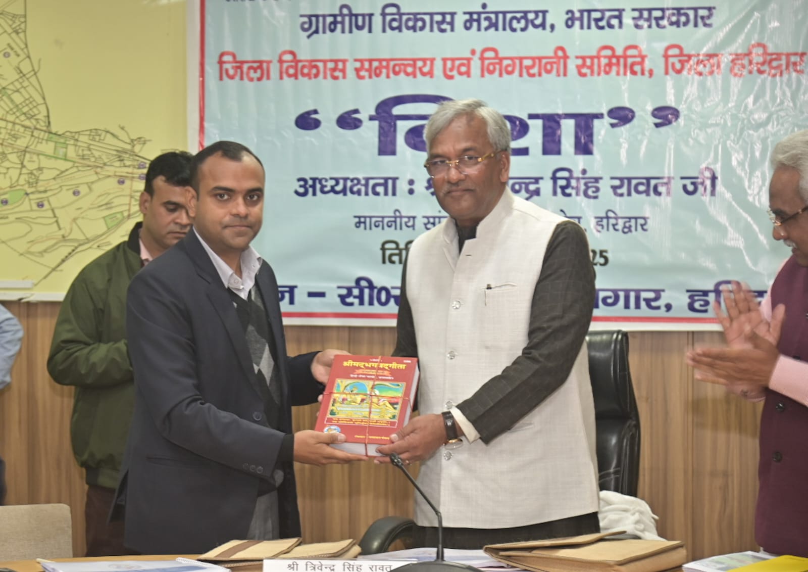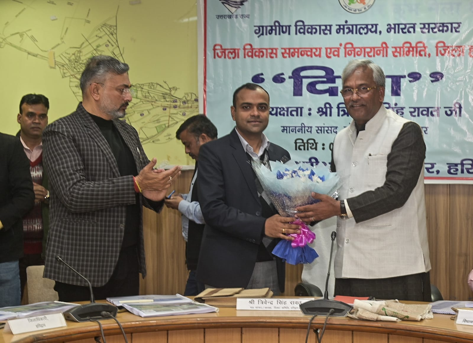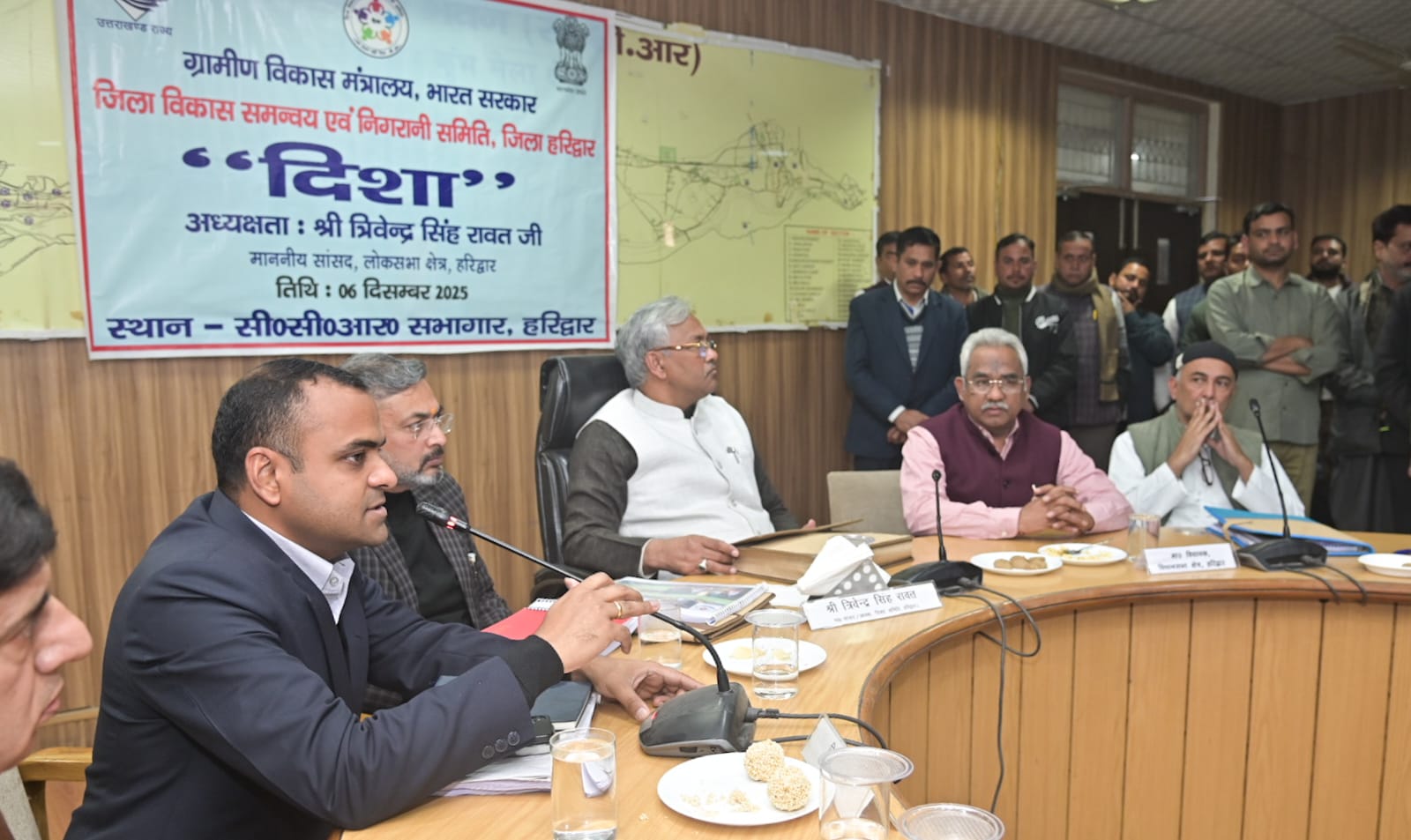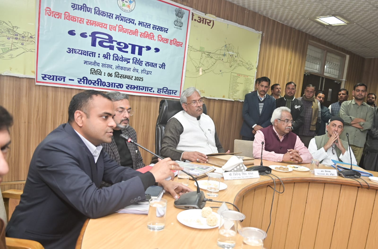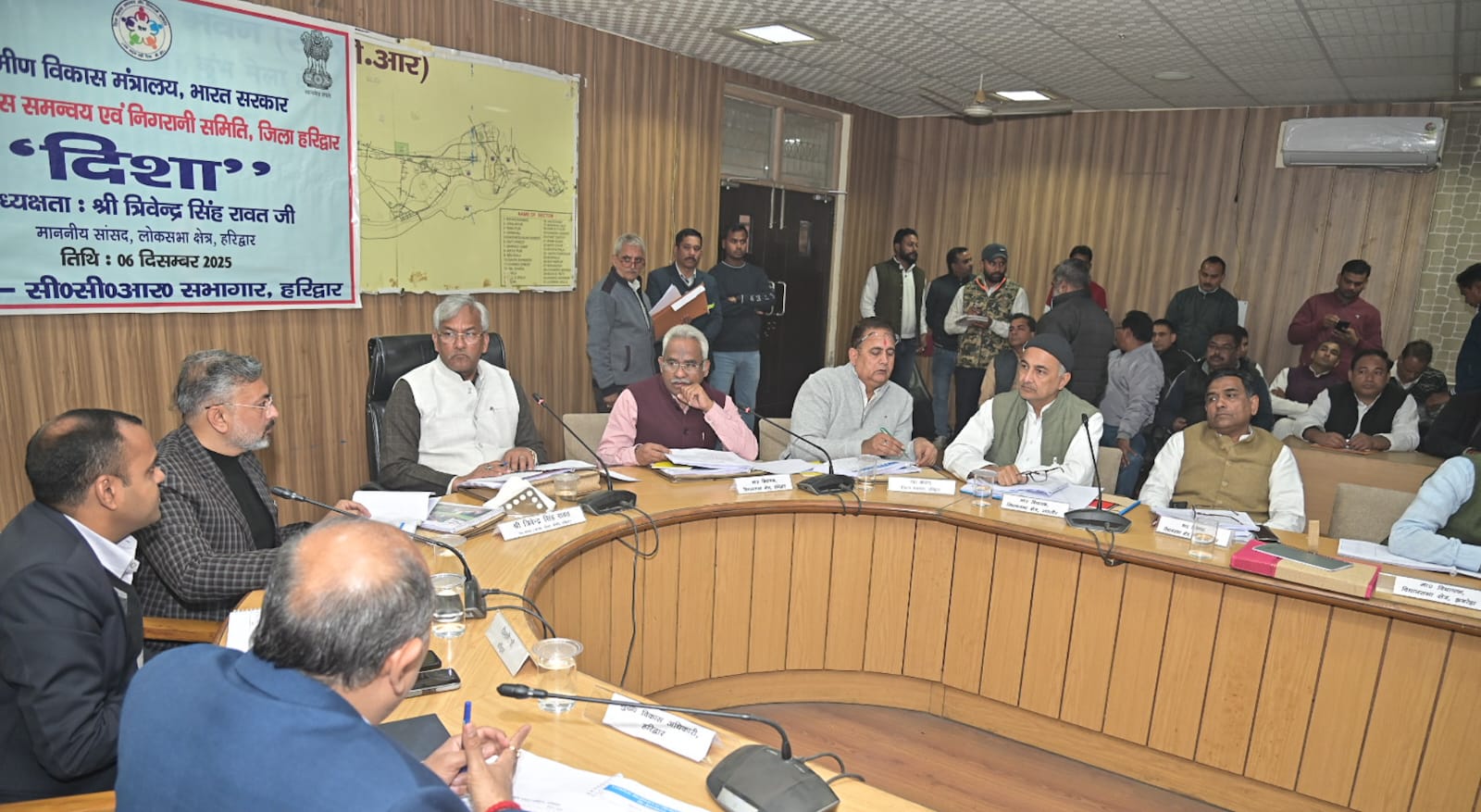 *हरिद्वार । लोक सभा सांसद त्रिवेन्द्र सिंह रावत की अध्यक्षता में मेला नियत्रण कक्ष सीसीआर के सभा कक्ष में जिला विकास समन्व्य एवं निगरानी समिति (दिशा) की बैठक आयोजित की गई जिसमें विभिन्न विभागों के माध्यम से केन्द्र सरकार द्वारा संचालित जल कल्याणकारी योजनाओं की विभागवार समीक्षा की गई तथा पूर्व बैठक में दिए गये निर्देशों में की गई कार्यवाही की विभागवार समीक्षा की गई।