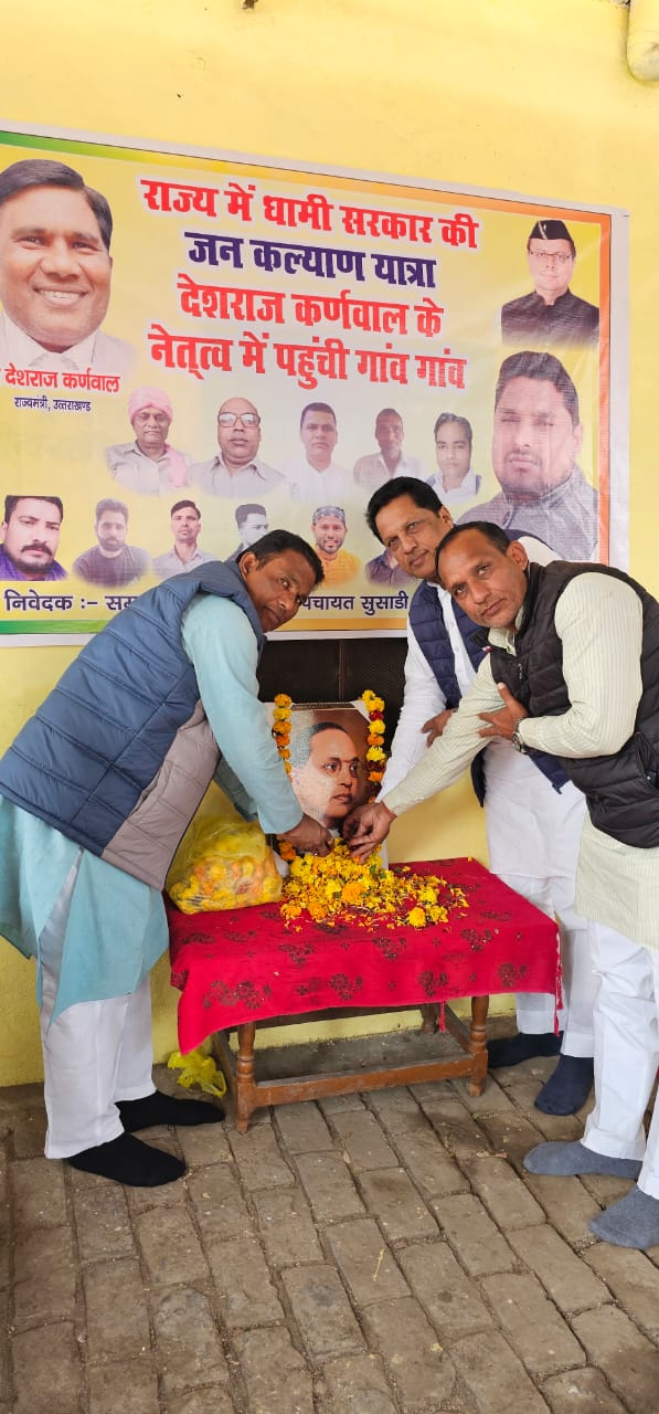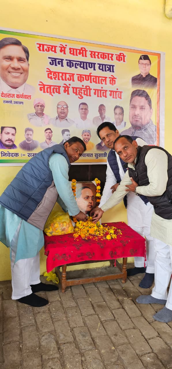 हरिद्वार ।ग्राम सुसाडी खुर्द में बाबा साहेब डॉ. भीमराव अम्बेडकर परिणाम दिवस योजना के अंतर्गत एक भव्य कार्यक्रम का आयोजन किया गया। कार्यक्रम में मुख्य अतिथि के रूप में देशराज कर्णवाल, उपाध्यक्ष, समाज कल्याण योजनाएं अनुश्रवण समिति (राज्यमंत्री स्तर) उपस्थित रहे ।