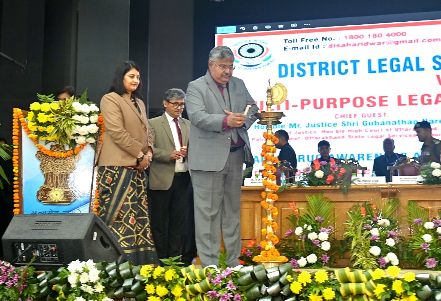 *उत्तराखंड राज्य सेवा विधिक प्राधिकरण नैनीताल एवं जिला सेवा विधिक प्राधिकरण हरिद्वार के संयुक्त तत्वाधान में कोर कॉलेज हरिद्वार में नशा मुक्त अभियान के तहत बहुद्देश्य विधिक सेवा एवं जागरूकता शिविर का आयोजन किया गया,जिसमें मुख्य अतिथि माननीय मुख्य न्यायाधीश उच्च न्यायालय नैनीताल गुहनाथन नरेंद्र एवं विशेषत अतिथि न्यायमूर्ति राकेश थपलियाल ने दीप प्रज्वलित कर कार्यक्रम का शुभारंभ किया।*