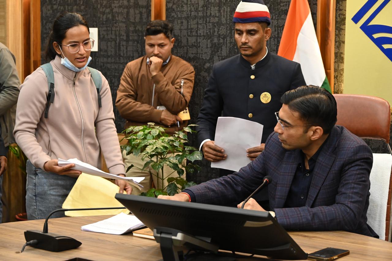 एक पैर से दिव्यांग रेखा देवी ने पुत्री की शादी के लिए आर्थिक सहायता की गुहार पर ओसी क्लेक्ट्रेट को जांच करवा के प्रकरण प्रस्तुत करने के निर्देश दिए गए। साथ ही समाज कल्याण अधिकारी को महिला का दिव्यांग प्रमाण पत्र भी बनाने को कहा गया।