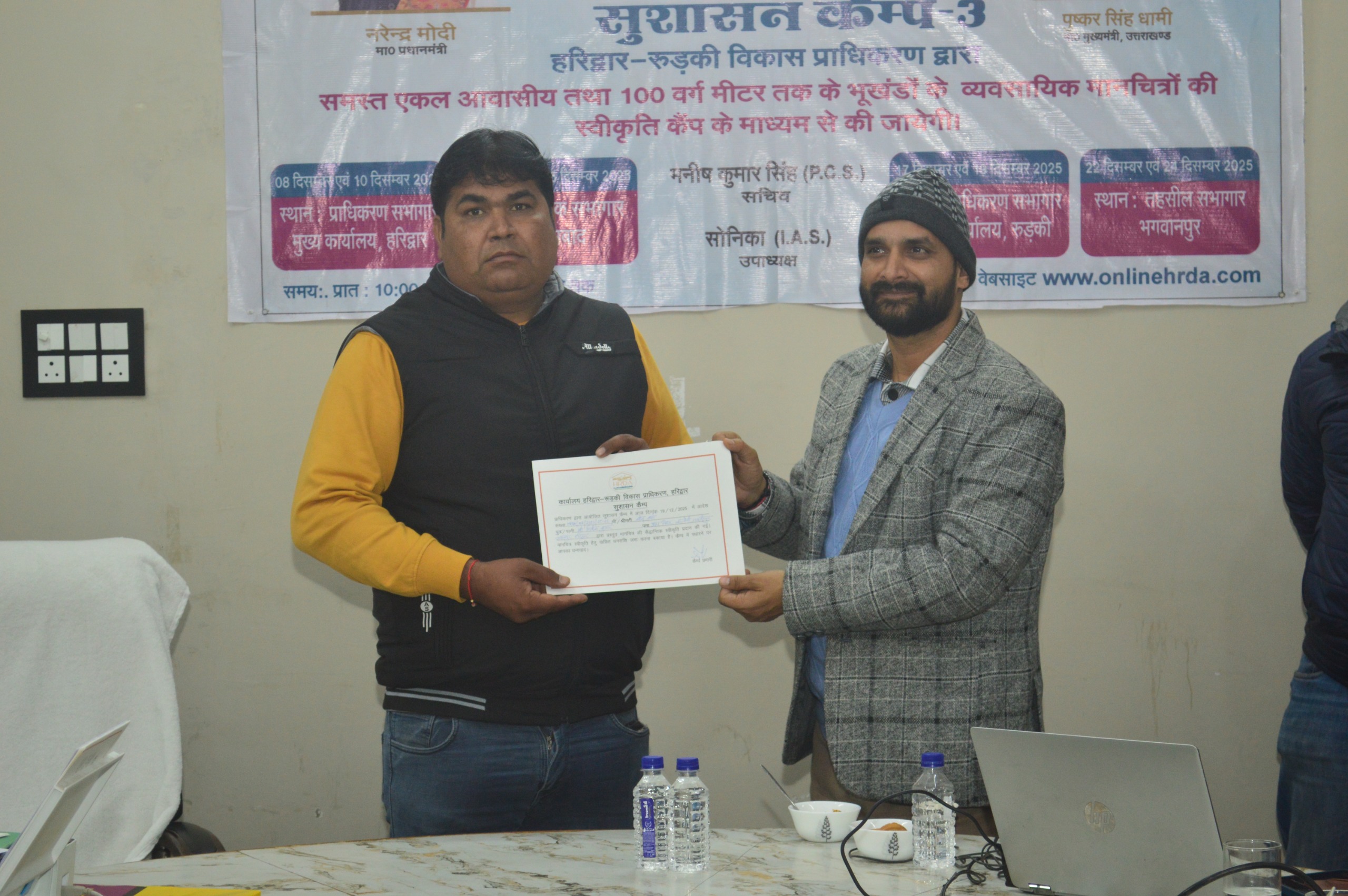 माननीय मुख्यमंत्री श्री पुष्कर सिंह धामी के सरलीकरण, समाधान, निस्तारण एवं संतुष्टि के मंत्र को आगे बढ़ाते हुए हरिद्वार–रुड़की विकास प्राधिकरण (HRDA) द्वारा आज सुशासन कैंप का सफल आयोजन हरिद्वार रुड़की विकास प्राधिकरण, शाखा कार्यालय रुड़की के सभागार में किया गया। इससे पूर्व भी दो सुशासन कैंप आयोजित किए जा चुके हैं।