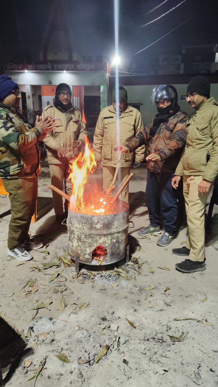 वरिष्ठ पुलिस अधीक्षक हरिद्वार के विशेष निर्देशानुसार रात्रि ड्यूटी में तैनात पुलिसकर्मियों के लिए अलाव व चाय की उचित व्यवस्था सुनिश्चित की गई है