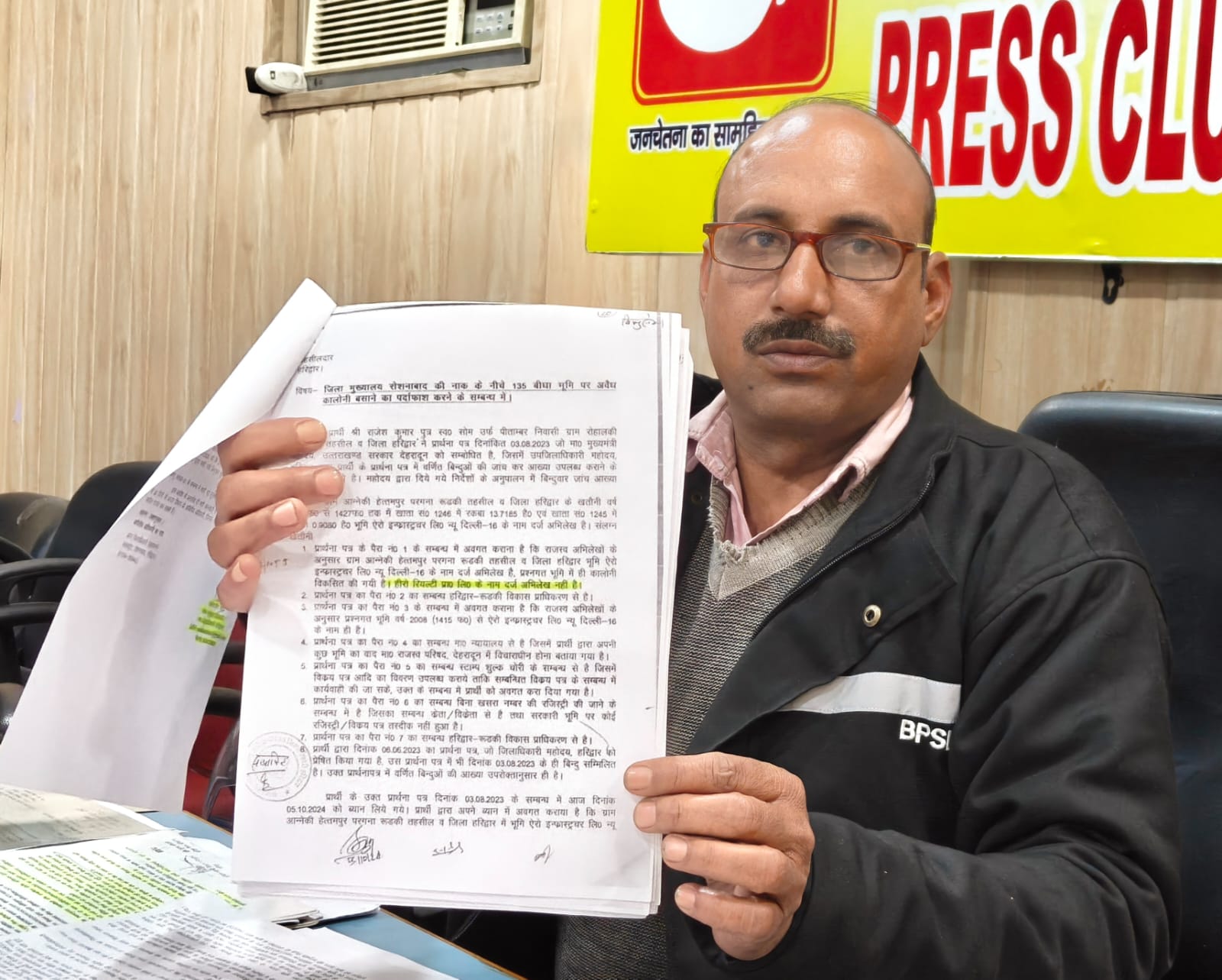 हरिद्वार, 24 दिसम्बर। रोहालकी निवासी राजेश कुमार ने रोशनाबाद क्षेत्र में सरकारी भूमि पर कथित रूप से अवैध कॉलोनी निर्माण का आरोप लगाया है। प्रैस क्लब में पत्रकारांे से वार्ता करते हुए राजेश कुमार ने कहा कि इस संबंध में जिलाधिकारी को ज्ञापन देकर कार्रवाई की मांग की है। यदि कार्रवाई नहीं होती है तो वे जिलाधिकारी कार्यालय पर धरना देंगे। राजेश कुमार कहा कि वर्ष 2007-08 में भूमि के संबंध में विभिन्न स्तरों पर प्रक्रियाएं अपनाई गईं। जिनमें कथित रूप से नियमों की अनदेखी की गई। आरोप है कि भूमि को औद्योगिक/व्यावसायिक प्रयोजन दर्शाकर आगे बढ़ाया गया, जबकि वास्तविक स्थिति में भूमि सरकारी थी और उस पर निजी स्वामित्व का दावा नहीं किया जा सकता। कहा कि वर्ष 2023 और 2024 में संबंधित विभागों और प्रशासनिक अधिकारियों को इस विषय में अवगत कराया गया, लेकिन अब तक ठोस कार्रवाई नहीं हो पाई। शिकायत के अनुसार, भूमि पर कालोनी विकसित करने के लिए नामांतरण, ले-आउट और अन्य प्रक्रियाओं में गंभीर अनियमितताएं की गईं। उन्होंने यह आरोप भी लगाया है कि भूमि पर निर्माण कार्य से पहले आवश्यक अनुमतियां नहीं ली गईं और शासनादेशों का उल्लंघन किया गया। उन्होंने जिलाधिकारी से पूरे मामले की उच्चस्तरीय जांच कराए जाने की मांग की है। संबंधित अभिलेखों की सत्यता की जांच हो और यदि अनियमितताएं पाई जाती हैं तो दोषियों के खिलाफ सख्त कार्रवाई की जाए।