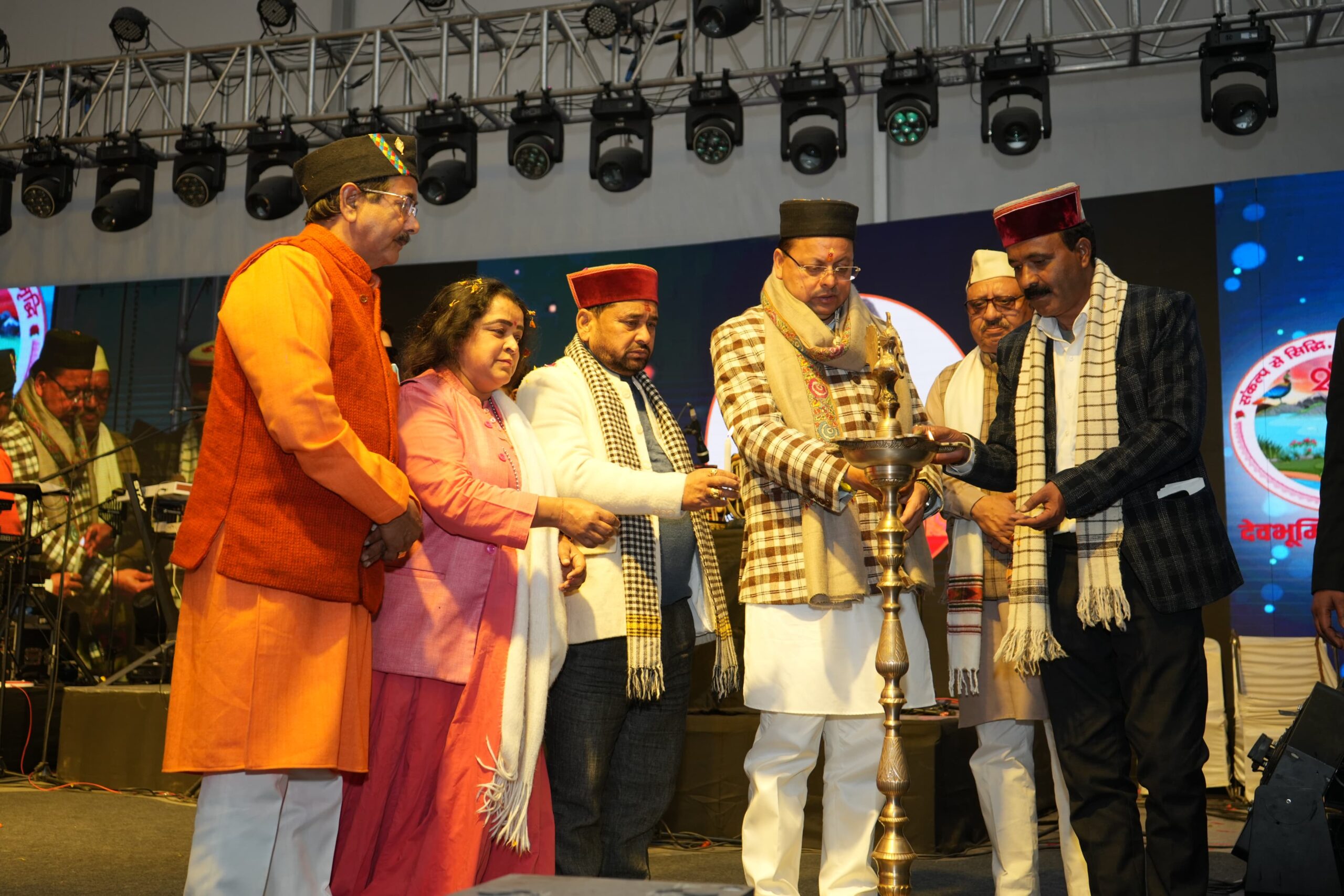 उत्तराखंड राज्य स्थापना के 25 वर्ष पूर्ण होने के उपलक्ष्य में आयोजित तीन दिवसीय “देवभूमि रजत उत्सव एवं शीतकालीन चारधाम यात्रा पर आधारित कार्यक्रम” के अंतिम दिन के कार्यक्रम का मुख्यमंत्री श्री पुष्कर सिंह धामी द्वारा दीप प्रज्वलित कर शुभारम्भ किया गया। इस ऐतिहासिक अवसर पर मुख्यमंत्री ने प्रदेश की जनता को रजत जयंती वर्ष की हार्दिक शुभकामनाएं देते हुए उन सभी वीर शहीदों और आंदोलनकारियों को नमन किया, जिनके संघर्षों के फलस्वरूप उत्तराखंड राज्य का सपना साकार हुआ। उन्होंने विशेष रूप से मातृशक्ति के योगदान की सराहना करते हुए कहा कि राज्य के निर्माण में महिलाओं की भूमिका विस्मरणीय रही है और आज वे ही ग्रामीण अर्थव्यवस्था को नई ऊंचाइयों पर ले जा रही हैं। इस अवसर पर मुख्यमंत्री पुष्कर सिंह धामी ने उत्तराखंड आंदोलकारियों को भी सम्मानित किया।