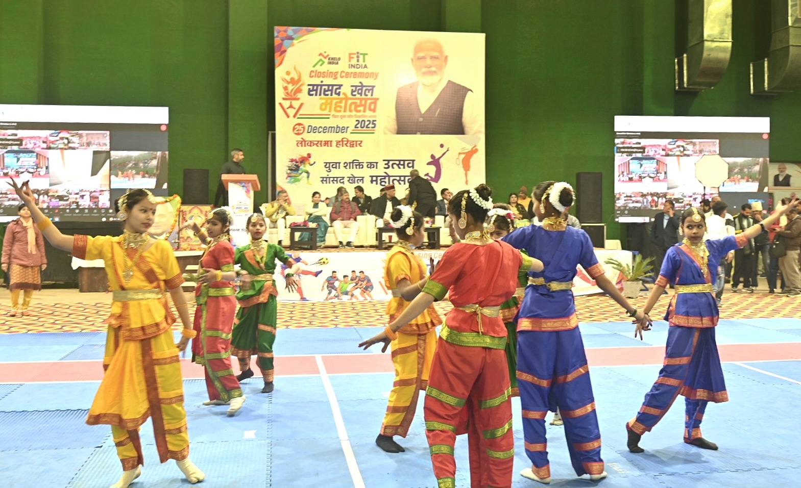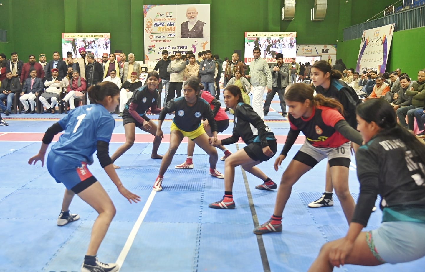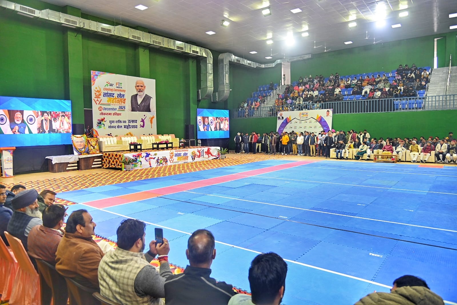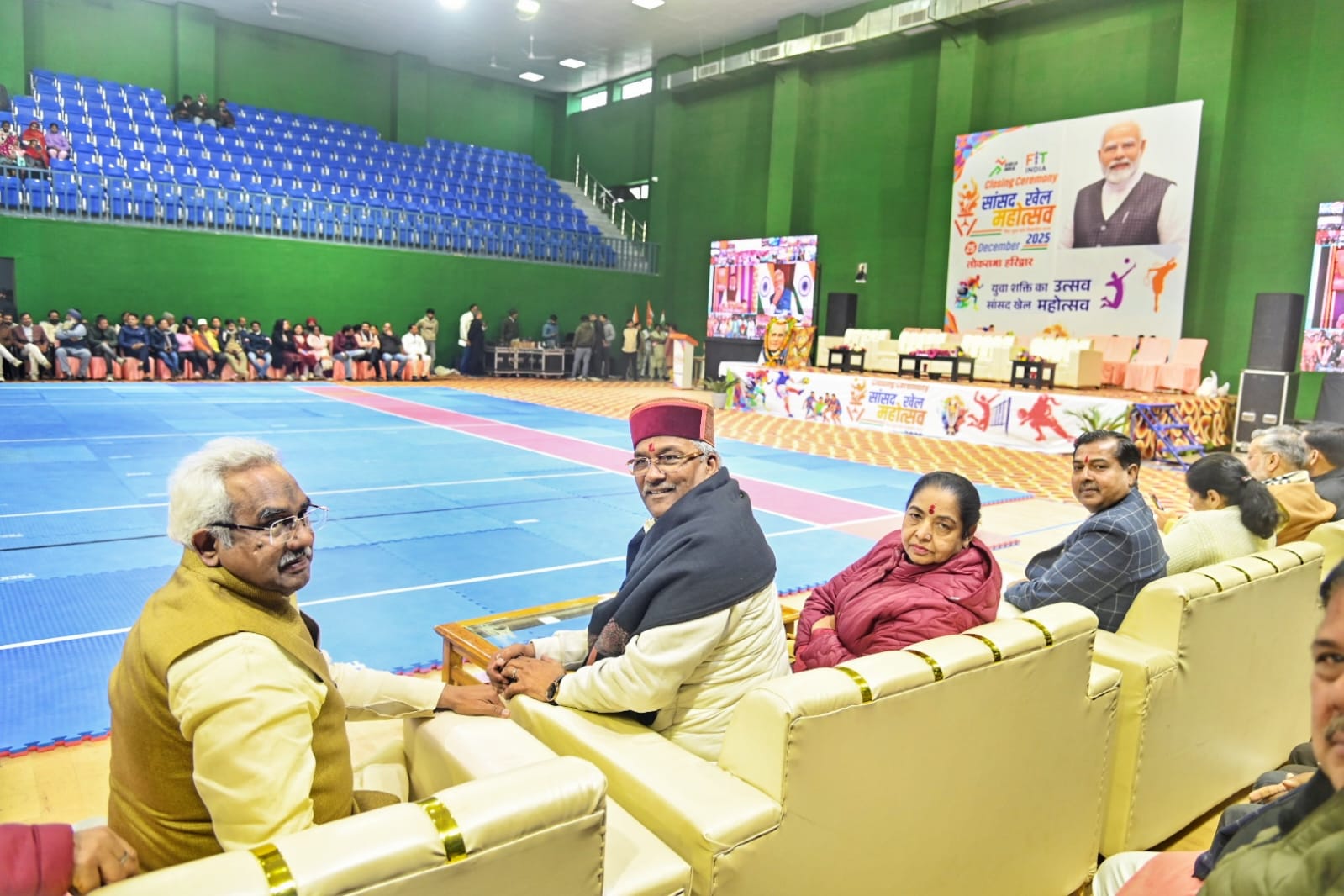 *हरिद्वार।सासंद खेल महोत्सव 2025 समापन के अवसर पर हरिद्वार सासंद त्रिवेंद्र सिंह रावत,राज्य सभा सासंद कल्पना सैनी सहित जनप्रतिनिधियों द्वारा दीप प्रज्वलित कर कार्यक्रम का शुभारंभ किया,इस अवसर पर प्रधानमंत्री नरेंद्र मोदी का सासंद खेल महोत्सव का वर्चुअल (लाइव) माध्यम से संबोधन सुना गया।