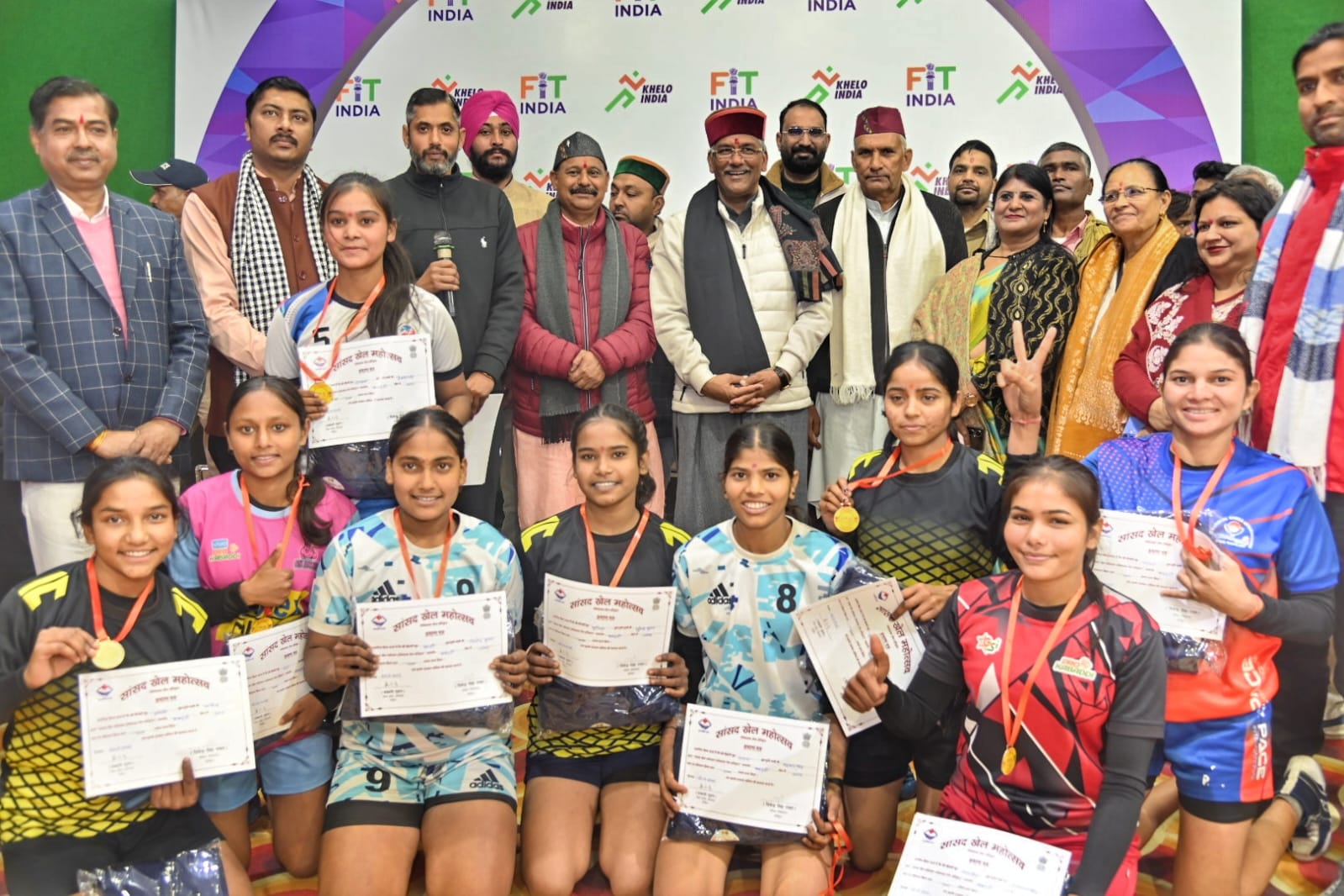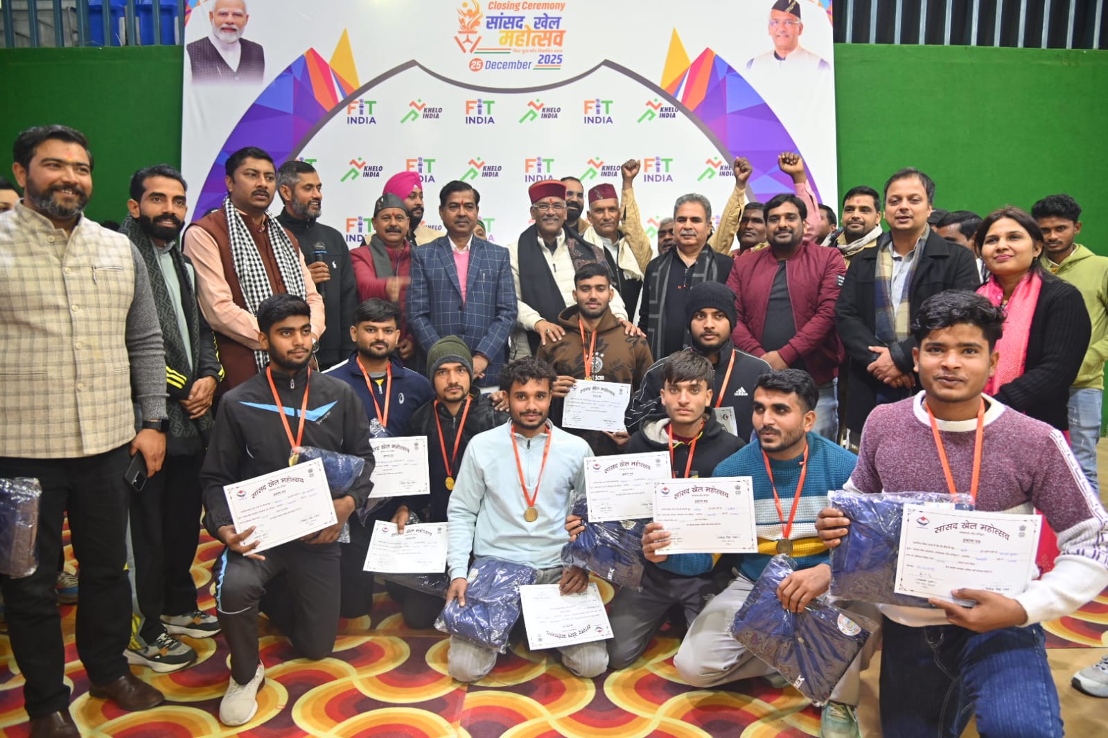 सासंद खेल महोत्सव के समापन अवसर पर आयोजित की गई विभिन्न खेल प्रतियोगिताओं में प्रथम,द्वितीय स्थान पर रही टीमों को प्रशस्ति पत्र एवं मेडल देकर सम्मति किया गया।सासंद खेल महोत्सव प्रतियोगिता की ट्रॉफ़ी विधान सभा खानपुर ने अधिक अंक अर्जित करने पर हासिल की।