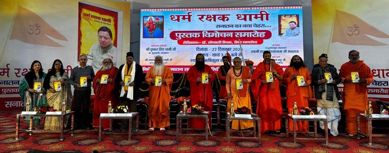 हरिद्वार ।राष्ट्र संचालन के लिए धर्म नीति का होना आवश्यक है, धर्म की रक्षा होगी तभी राष्ट्र सुरक्षित रहेगा। राष्ट्र-राज्य की सुरक्षा को चुनौती दे रही जिहादी मानसिकता को समाप्त करने में जिस तरह मुख्यमंत्री पुष्कर सिंह धामी ने ताबड़ तोड़ कार्यवाही की है, उसे डॉ. सोनाली मिश्रा व रीना मानसेरा ने लिपिबद्ध कर सहरानीय कार्य किया है। यह उद्गगार सनातन सद्भावना समिति द्वारा आयोजित कार्यक्रम में जगतगुरु शंकराचार्य स्वामी राजराजेश्वराश्रम महाराज ने धर्म रक्षक धामी पुस्तक के विमोचन अवसर पर ऋषिकुल सभागार में दिए।
