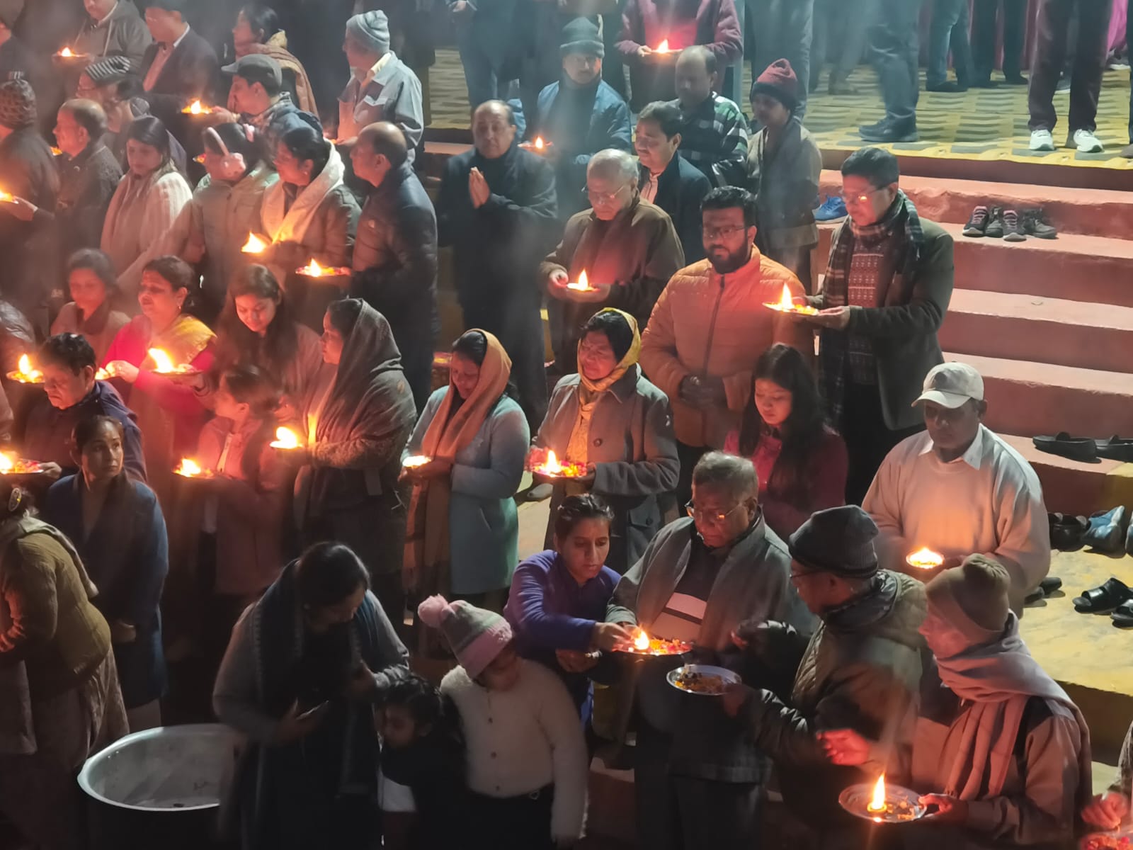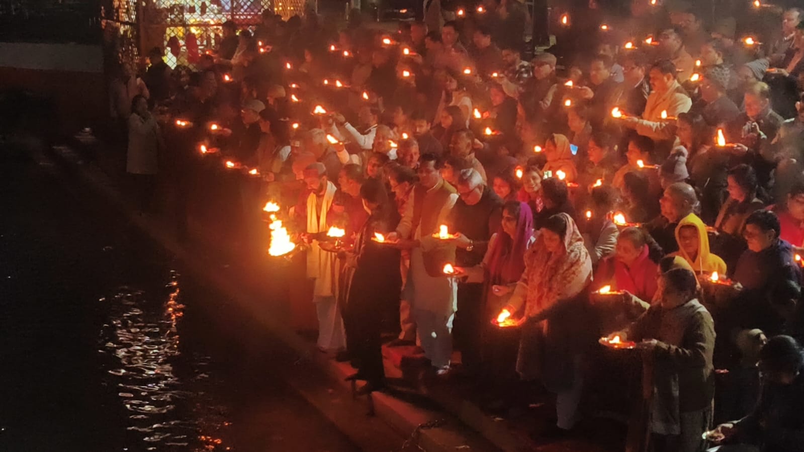 हरिद्वार। हरिद्वार वैश्य एकता परिषद ने नए साल का स्वागत भव्य गंगा महाआरती के साथ किया। हरिद्वार में महाराजा अग्रसेन घाट पर सैकड़ों लोगों ने एक साथ मां गंगा जी की आरती कर सभी के लिए सुख समृद्धि की कामना की। अग्रसेन घाट पर गंगा आरती के वक्त अद्भुत नजारा दिखाई दिया।