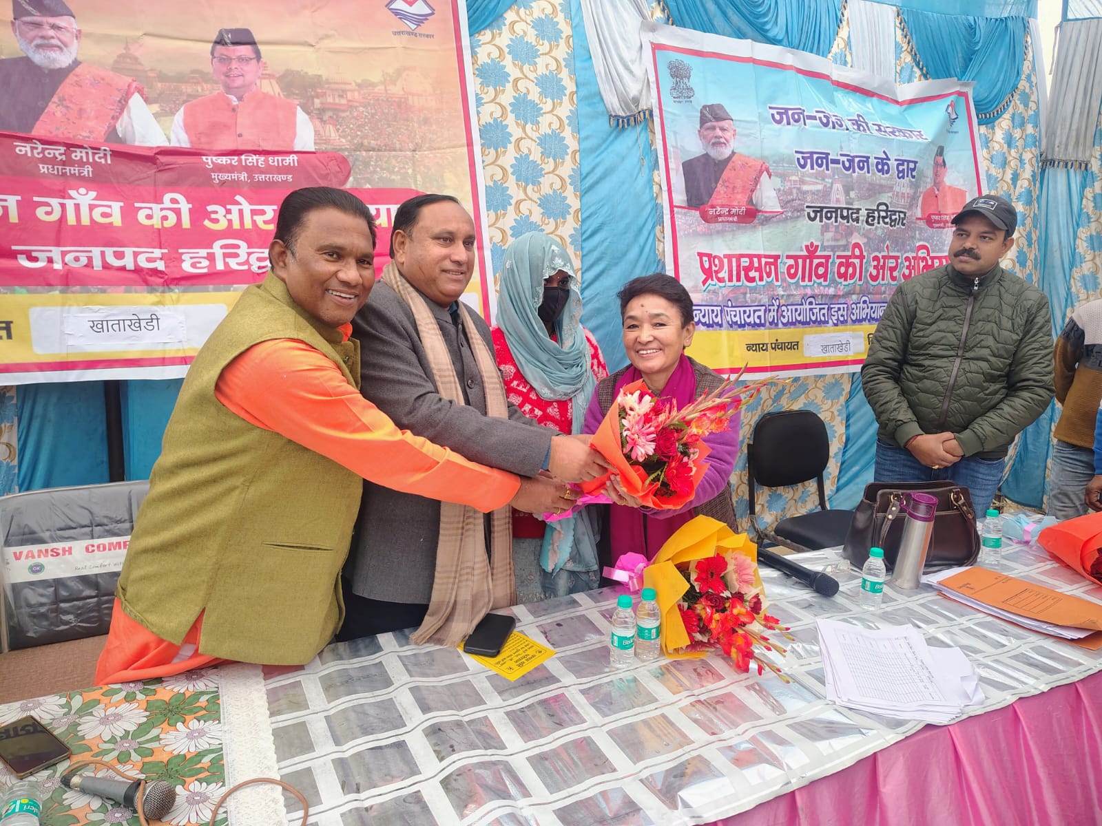 शिविर में झबरेडा विधायक वीरेंद्र जाति ,प्रदेश अध्यक्ष अल्पसंख्यक मोर्चा अनीश गौड़, जिलाध्यक्ष महिला मोर्चा श्रीमती नीलकमल शर्मा, ,खंड विकास अधिकारी सुमन कोटियाल सहित क्षेत्र के समस्त ग्राम प्रधानगण, पंचायत सदस्यगण, अधिकारी व कर्मचारीगण और बड़ी संख्या में स्थानीय लोग मौजूद रहे।