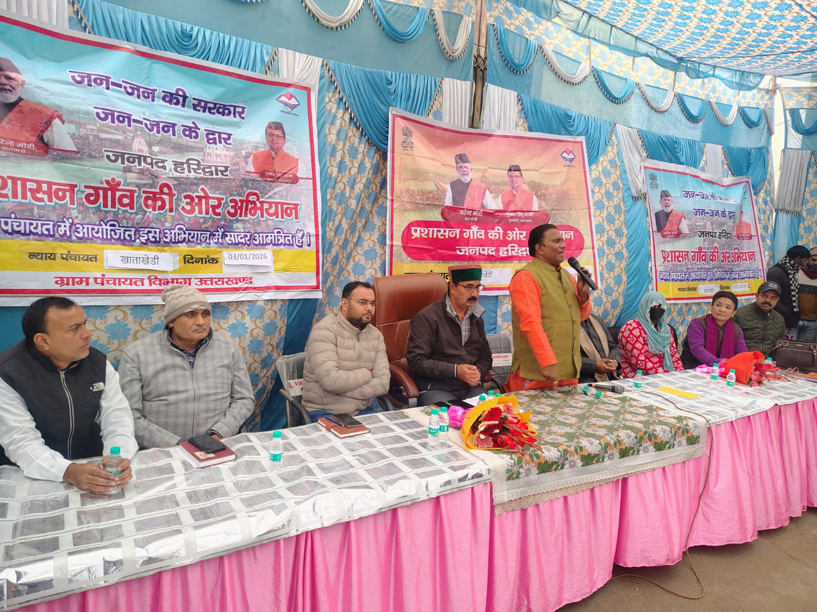 कार्यक्रम को संबोधित करते हुए उपाध्यक्ष, समाज कल्याण योजनाएं अनुश्रवण समिति (राज्यमंत्री स्तर)देशराज कर्णवाल ने कहा कि प्रदेश के यशस्वी मुख्यमंत्री श्री पुष्कर सिंह धामी जी के निर्देशानुसार प्रदेश की सभी न्याय पंचायतों में यह अभियान चलाया जा रहा है। इसका उद्देश्य विभिन्न विभागों द्वारा संचालित जन-कल्याणकारी योजनाओं का लाभ पात्र नागरिकों तक पहुँचाना है तथा उनकी समस्याओं का त्वरित गति से समाधान सुनिश्चित करना है।