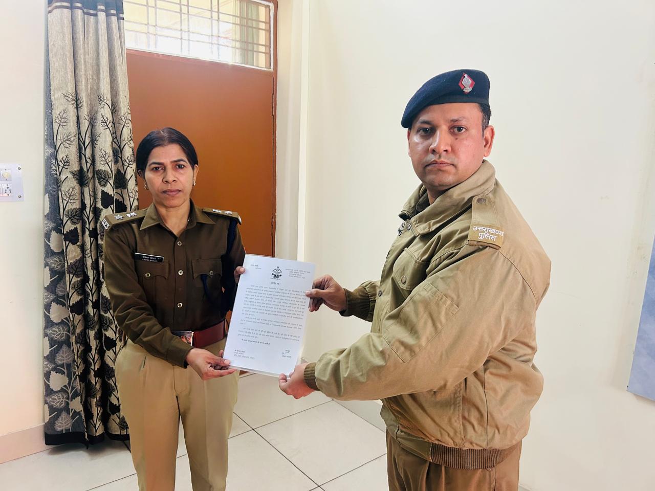 उसके उपरोन्त जीआरपी से स्थानान्त्तरण पर जाने वाले उ0नि0 (एम) मंजू तोमर एवं उ0नि0 (एम) हेमा पाण्डेय को सम्मानित किया गया ।