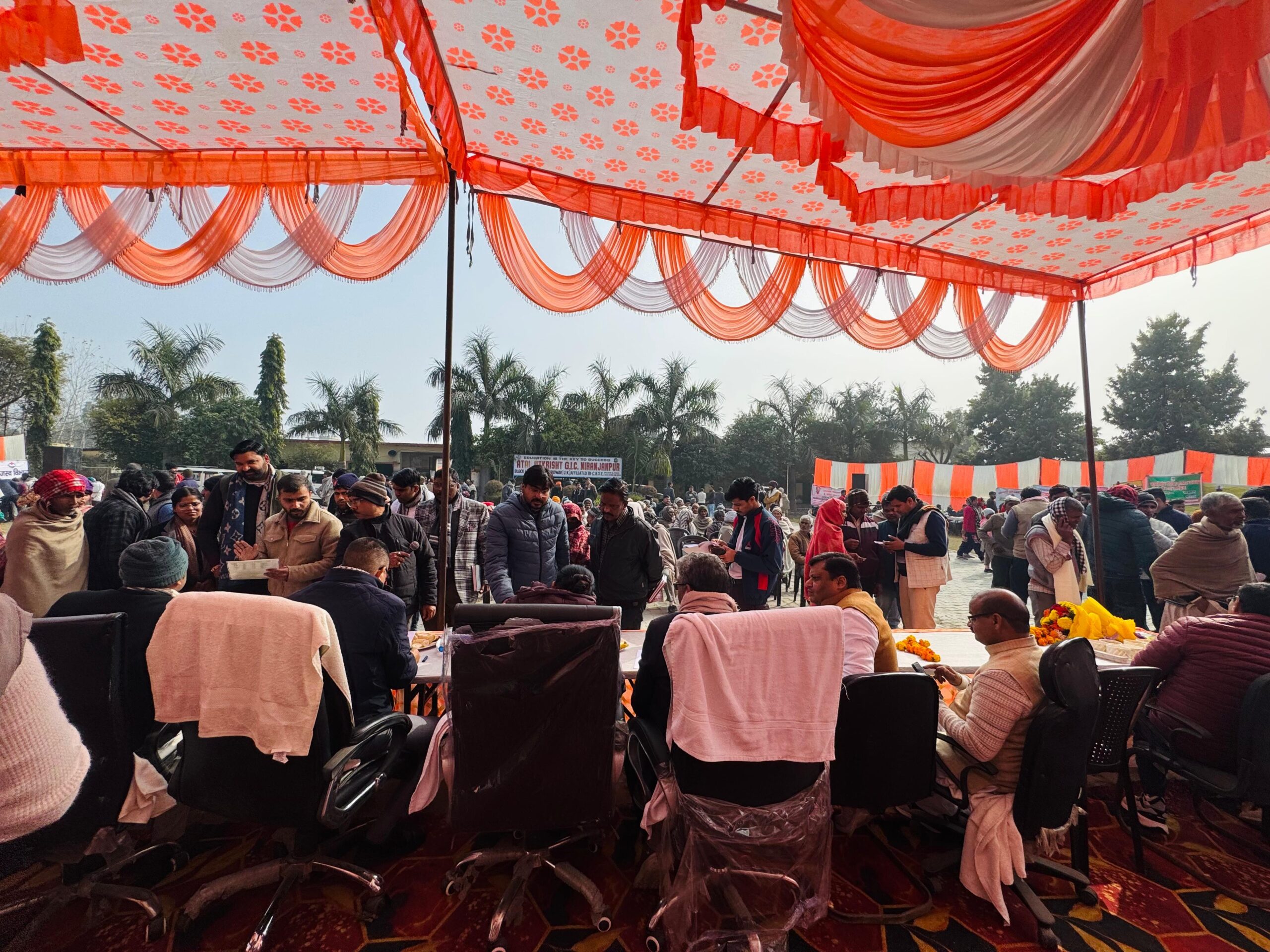 *हरिद्वार । अपर जिलाधिकारी वित्त एवं राजस्व दीपेंद्र सिंह नेगी की अध्यक्षता में विकासखंड विकास खण्ड लक्सर के न्याय पंचायत निरंजनपुर राजकीय इंटर कॉलेज निरंजनपुर में जन-जन की सरकार, जन-जन के द्वार शिविर में विभिन्न विभागों के माध्यम से संचालित जन कल्याणकारी योजनों से 768 क्षेत्रवासियों को लाभान्वित किया गया तथा विभिन्न विभागों के माध्यम से 1252 लोगों को विभिन्न प्रमाण पत्र निर्गत किए गए,इस शिविर में 2655 लोगों द्वारा किया गया प्रतिभाग ।