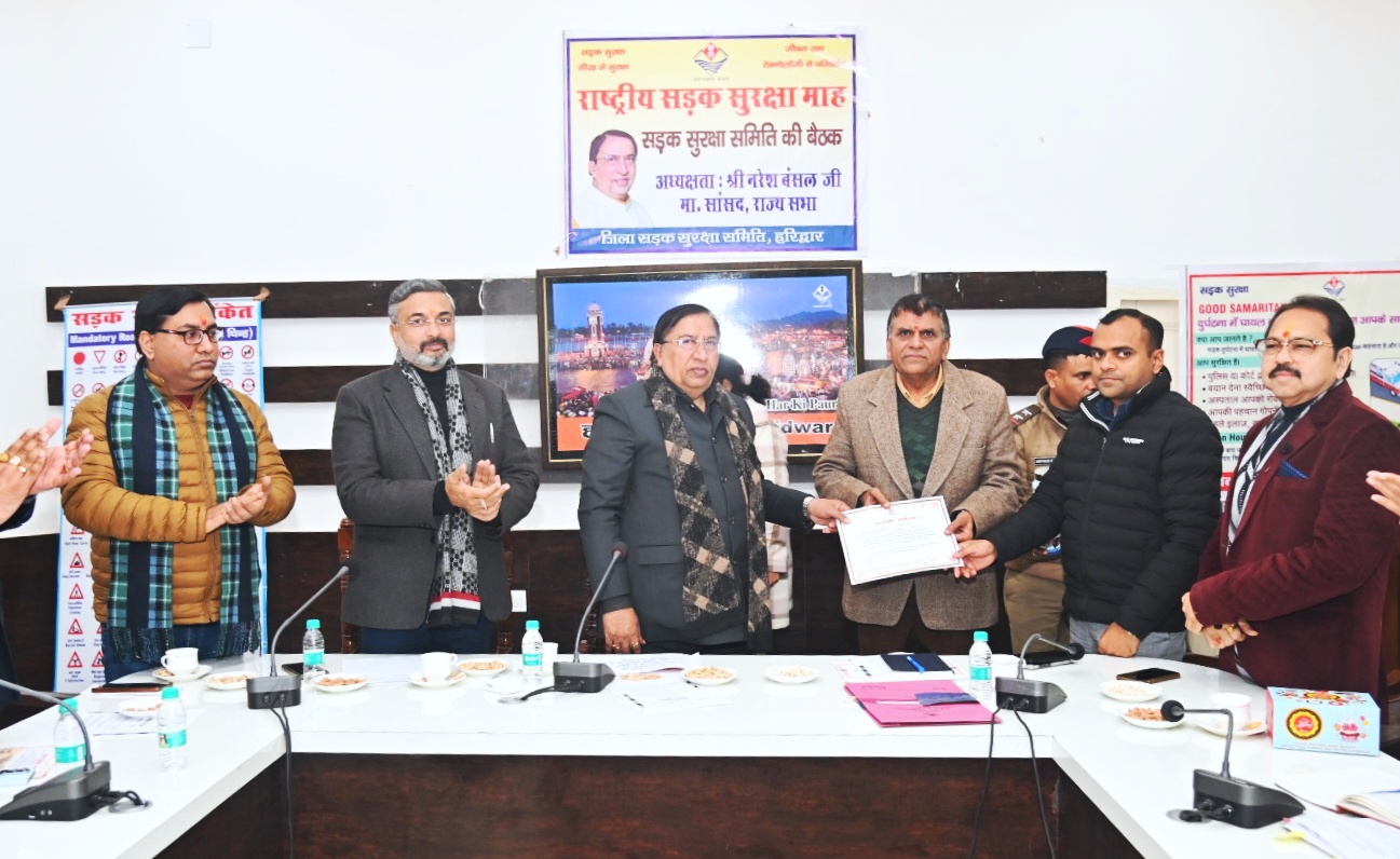 हरिद्वार। जिला सड़क सुरक्षा समिति के तत्वाधान में राज्यसभा सांसद नरेश बंसल ने ऋषिकुल आयुर्वेद महाविद्यालय के शरीर रचना विभागाध्यक्ष/चेयरमेन इंडियन रेडक्रास उत्तराखण्ड प्रोफेसर डॉ. नरेश चौधरी को ‘‘नेक राह-वीर’’(GOOD SAMARITAN) के रूप में किया सम्मानित’’