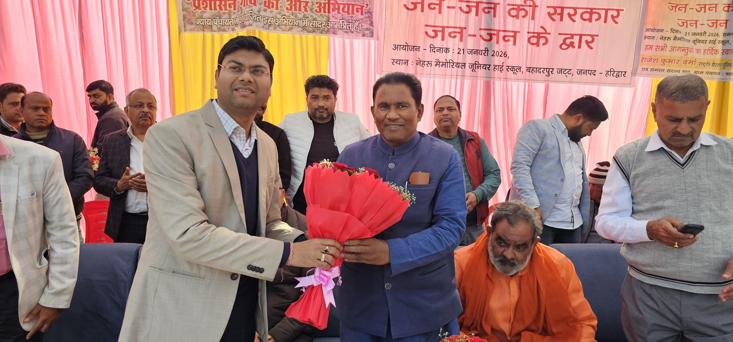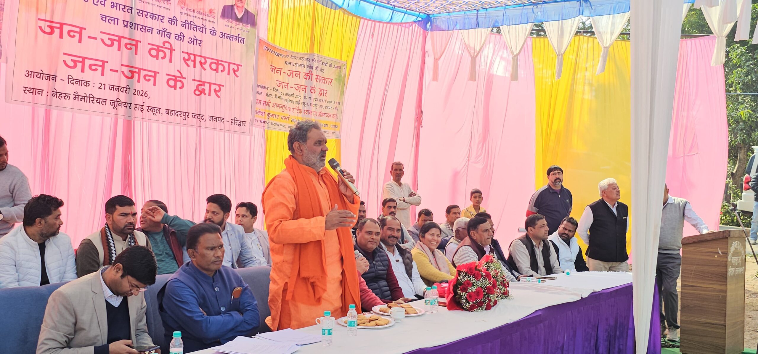 *हरिद्वार। अपर जिलाधिकारी (वित्त एवं राजस्व) दीपेंद्र सिंह नेगी की अध्यक्षता में विकासखंड बहादराबाद के न्याय पंचायत बहादुरपुर जट नेहरू मेमोरियल जूनियर हाई स्कूल में जन-जन की सरकार, जन-जन के द्वार शिविर में विभिन्न विभागों के माध्यम से संचालित जन कल्याणकारी योजनों से 768 क्षेत्रवासियों को लाभान्वित किया गया तथा विभिन्न विभागों के माध्यम से 187 लोगों को विभिन्न प्रमाण पत्र निर्गत किए गए,इस शिविर में 2176 लोगों द्वारा किया गया प्रतिभाग ।