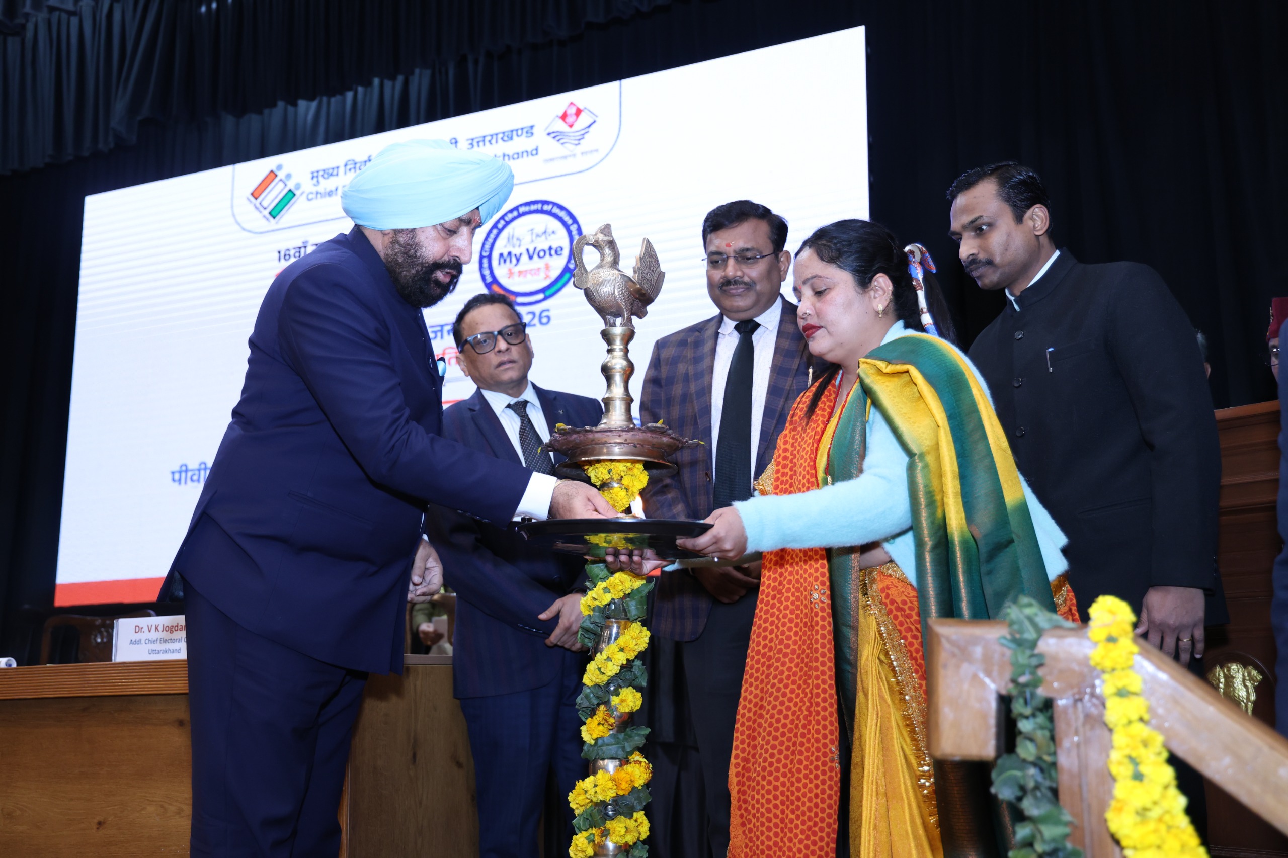 राज्यपाल लेफ्टिनेंट जनरल गुरमीत सिंह (से नि) ने 16वें राष्ट्रीय मतदाता दिवस के अवसर पर दीप प्रज्वलित कर कार्यक्रम का शुभारम्भ किया। इस दौरान राज्यपाल ने कार्यक्रम में उपस्थित नागरिकों को मतदाता शपथ भी दिलाई। राज्यपाल ने निर्वाचन गतिविधियों में उत्कृष्ट कार्य करने वाले जनपद रुद्रप्रयाग, उत्तरकाशी, चम्पावत और बागेश्वर के जिलाधिकारियों को सम्मानित किया। इसके साथ ही ईआरओ रुड़की, खटीमा और चकराता को प्री-एसआईआर के दौरान उत्कृष्ट कार्य हेतु सम्मानित किया गया। कार्यक्रम के दौरान राज्यपाल ने स्टेट आईकॉन पद्मश्री बसंती बिष्ट, ओलपिंयन मनीष रावत एवं नुंग्शी मलिक को स्मृति चिन्ह देकर सम्मानित किया। इस अवसर पर देहरादून जनपद के 18 वर्ष आयु पूर्ण कर चुके नए मतदाताओं को मतदाता पत्र देकर राज्यपाल ने सम्मानित किया।