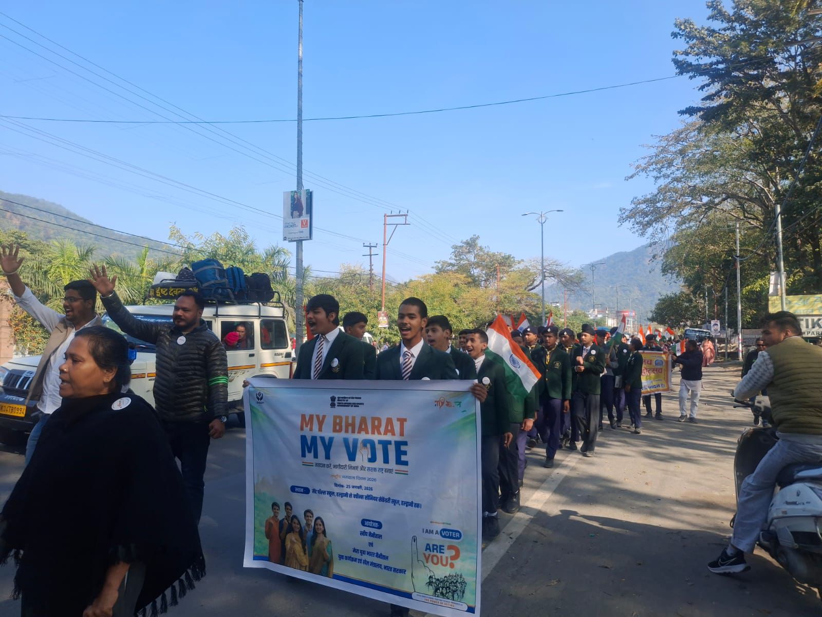मेरा युवा भारत (MY Bharat) उत्तराखंड, युवा कार्यक्रम एवं खेल मंत्रालय भारत सरकार द्वारा राष्ट्रीय मतदाता दिवस के उपलक्ष्य पर प्रदेश में मतदाता जागरूकता कार्यक्रम के आयोजन किेए गए। जिसके अंतर्गत देहरादून, टिहरी गढ़वाल, पौड़ी गढ़वाल में पदयात्राएं और साइकिल रैली निकाली गईं। जिला खेल कार्यालय नरेंद्र नगर टिहरी गढ़वाल के सौजन्य से पूर्णानंद स्टेडियम से भद्रकाली, भद्रकाली से पूर्णानंद वापसी तक साइकिल रैली का आयोजन किया गया। पौड़ी गढ़वाल के कण्डोलिया पार्क में सहायक निर्वाचन अधिकारी एस०ए०एल० शाह ने युवाओं को मतदाता शपथ दिलाई। नैनीताल में पदयात्रा का शुभारंभ सेंट पॉल्स स्कूल, काठगोदाम से हुआ, जो क्वीन्स सीनियर सेकेंडरी स्कूल, हल्द्वानी तक निकाली गई।