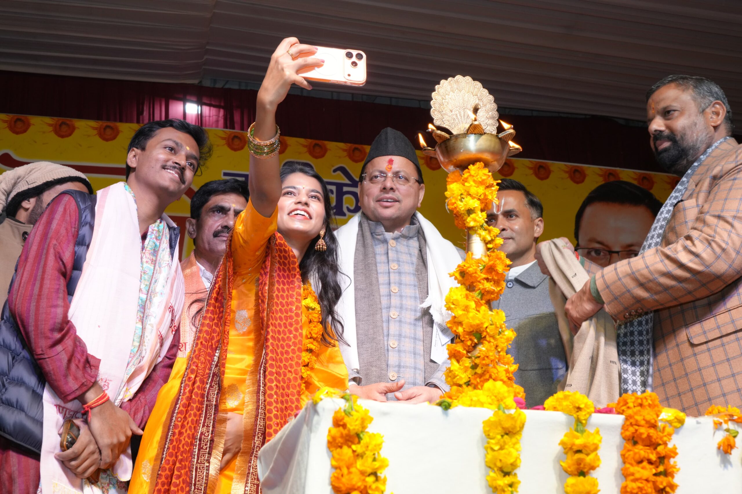मुख्यमंत्री पुष्कर सिंह धामी भरत मंदिर ऋषिकेश में आयोजित वसंतोत्सव 2026 मैथिली ठाकुर नाइट में हुए सम्मिलित