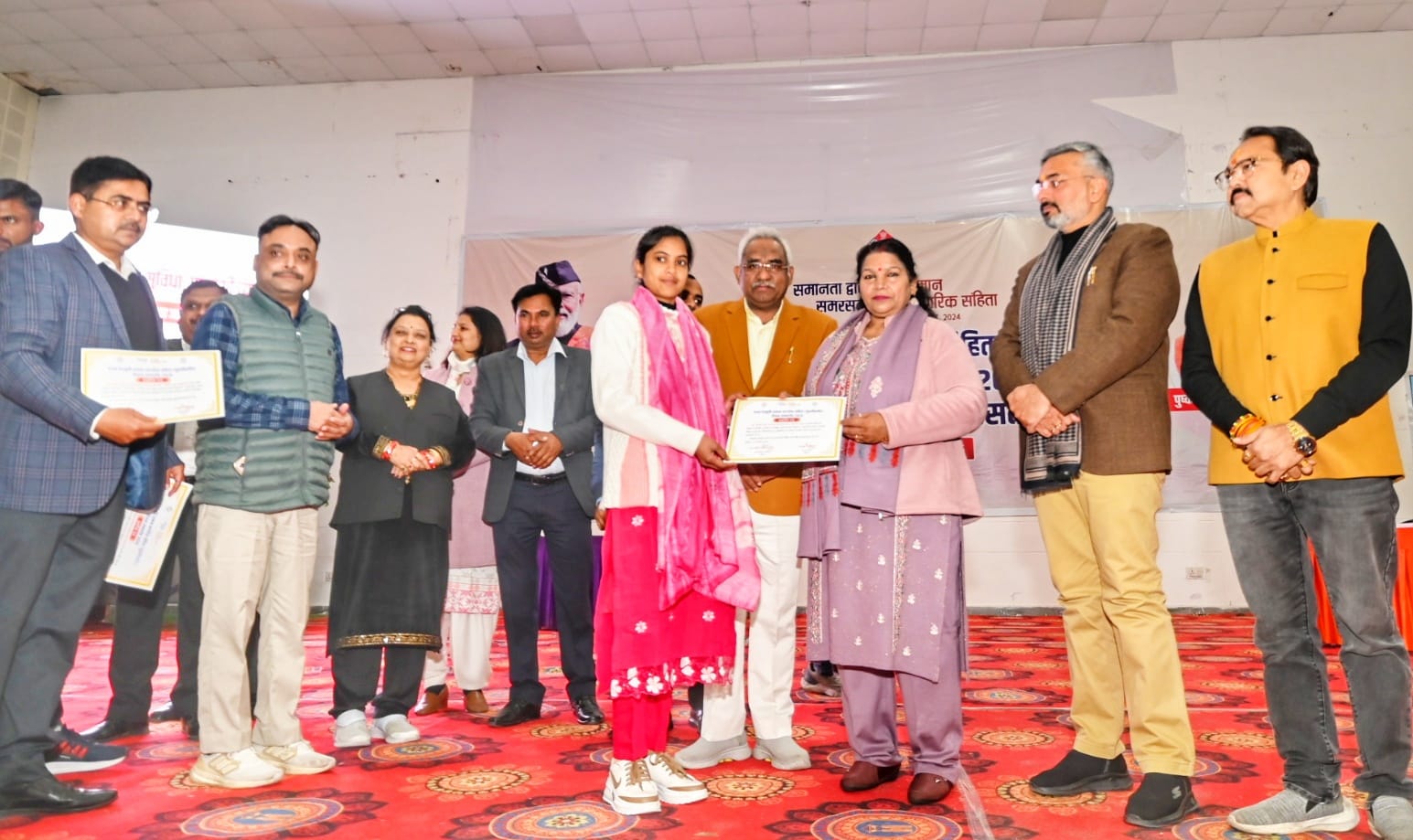 *समान नागरिक संहिता कानून के सफलता पूर्वक एक वर्ष पूर्ण होने के अवसर पर जिला मुख्यालय में ऋषिकुल आयुर्वेदिक महाविद्यालय ऑडिटोरियम में भव्य कार्यक्रम आयोजित किया गया।*