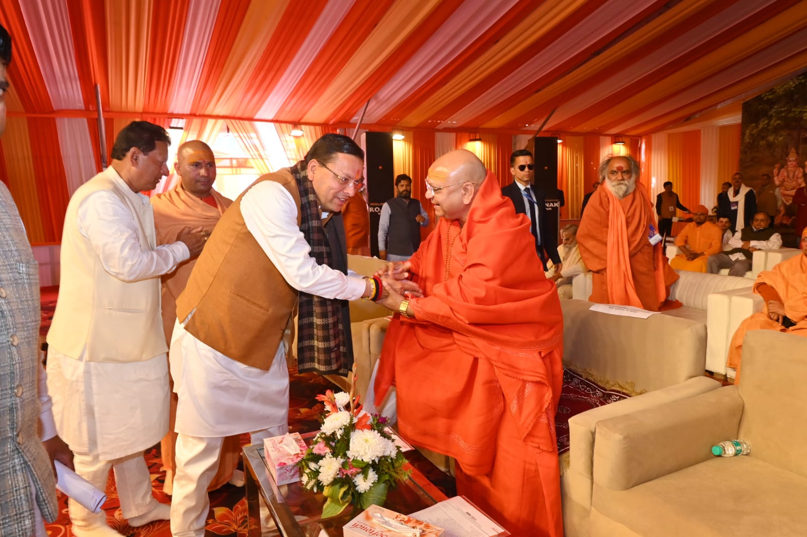 इस अवसर पर मुख्यमंत्री पुष्कर सिंह धामी ने कहा कि सनातन चेतना के जीवंत प्रतीक आप सभी संत-महात्मा, धर्मगुरु एवं श्रद्धालुजन, माँ गंगा के पावन तट पर स्थित सप्तऋषि क्षेत्र में एकत्र होकर राष्ट्र और संस्कृति के लिए अपना अमूल्य योगदान दे रहे हैं। उन्होंने कहा कि जिन महापुरुषों ने अपना सम्पूर्ण जीवन राष्ट्रधर्म, सेवा, त्याग और करुणा के लिए समर्पित किया, वे केवल संन्यासी नहीं बल्कि राष्ट्र चेतना से जुड़े दिव्य संत थे।