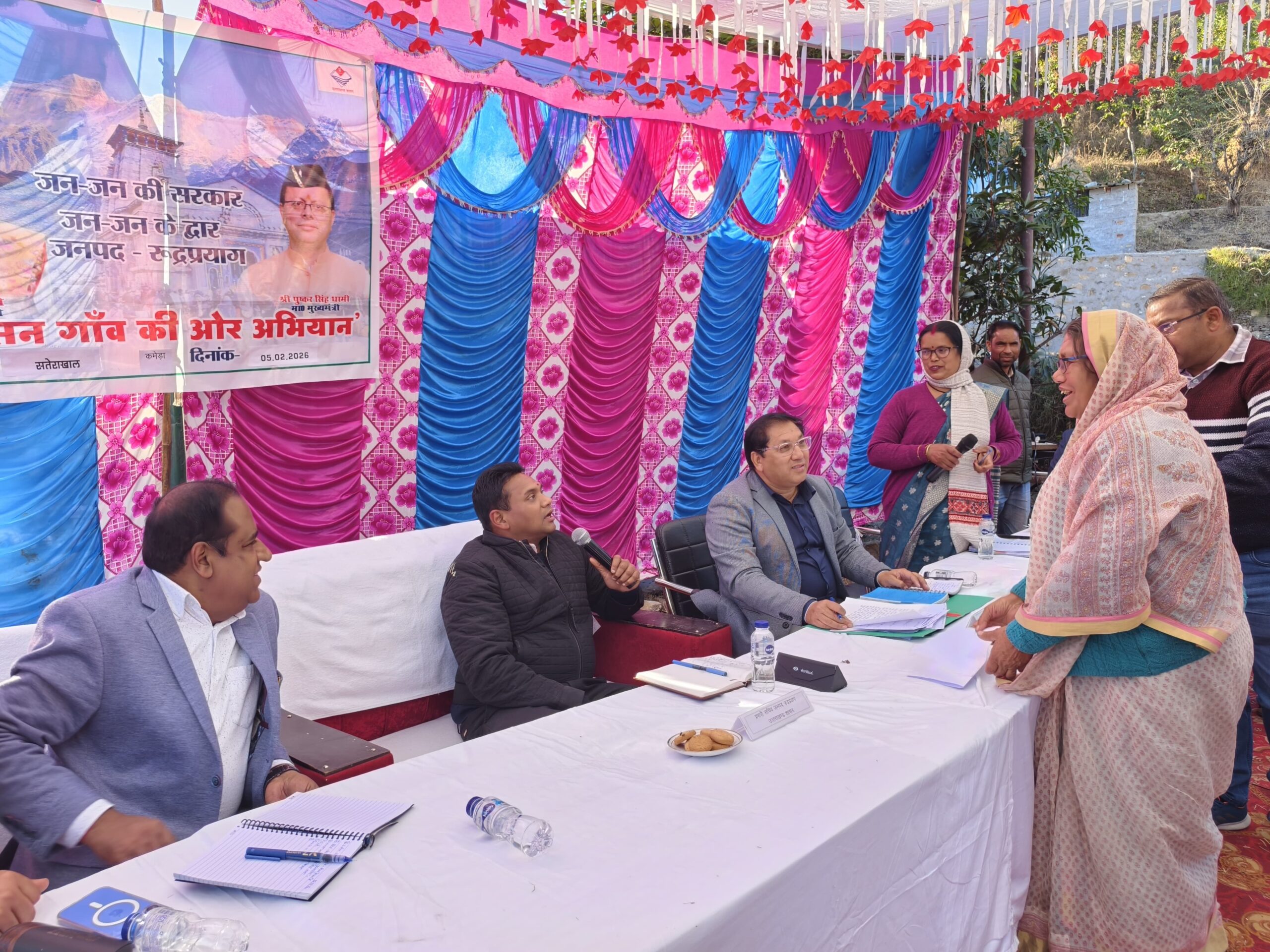 मा० मुख्यमंत्री उत्तराखण्ड के निर्देशानुसार आम जनमानस को केंद्र एवं राज्य सरकार की जनकल्याणकारी योजनाओं का लाभ एक ही स्थान पर उपलब्ध कराने तथा जनसमस्याओं के त्वरित एवं प्रभावी समाधान के उद्देश्य से प्रदेशभर में “जन-जन की सरकार, जन-जन के द्वार” अभियान संचालित किया जा रहा है। जिलाधिकारी रुद्रप्रयाग प्रतीक जैन के कुशल नेतृत्व में जनपद की 27 न्याय पंचायतों में चरणबद्ध रूप से बहुउद्देशीय शिविरों का आयोजन किया जा रहा है।