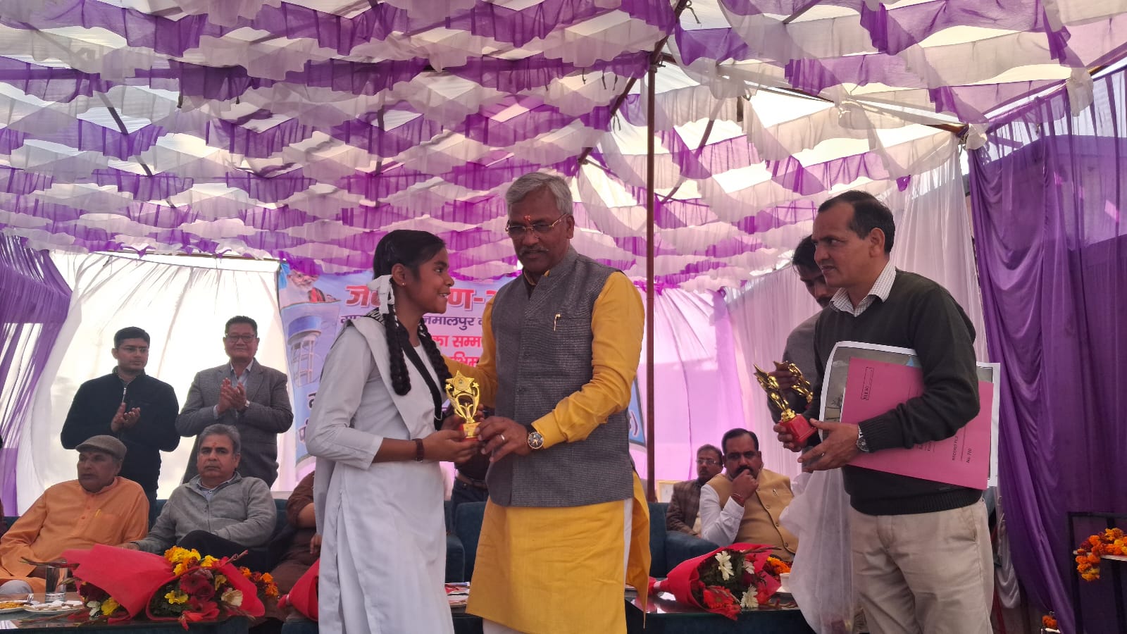 कार्यक्रम में मुख्य अतिथि हरिद्वार सांसद श्री त्रिवेंद्र सिंह रावत एवं हरिद्वार ग्रामीण विधायक श्रीमती अनुपमा रावत ने छात्राओं को पुरस्कार प्रदान कर उनका उत्साहवर्धन किया।