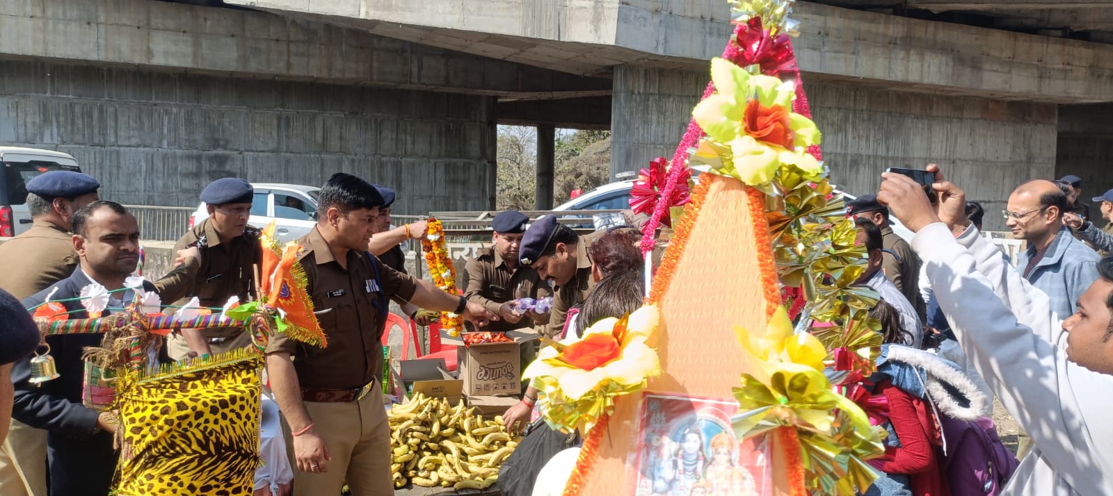 *शिव भक्तों को फूल माला पहनाकर, किया जलपान वितरण*