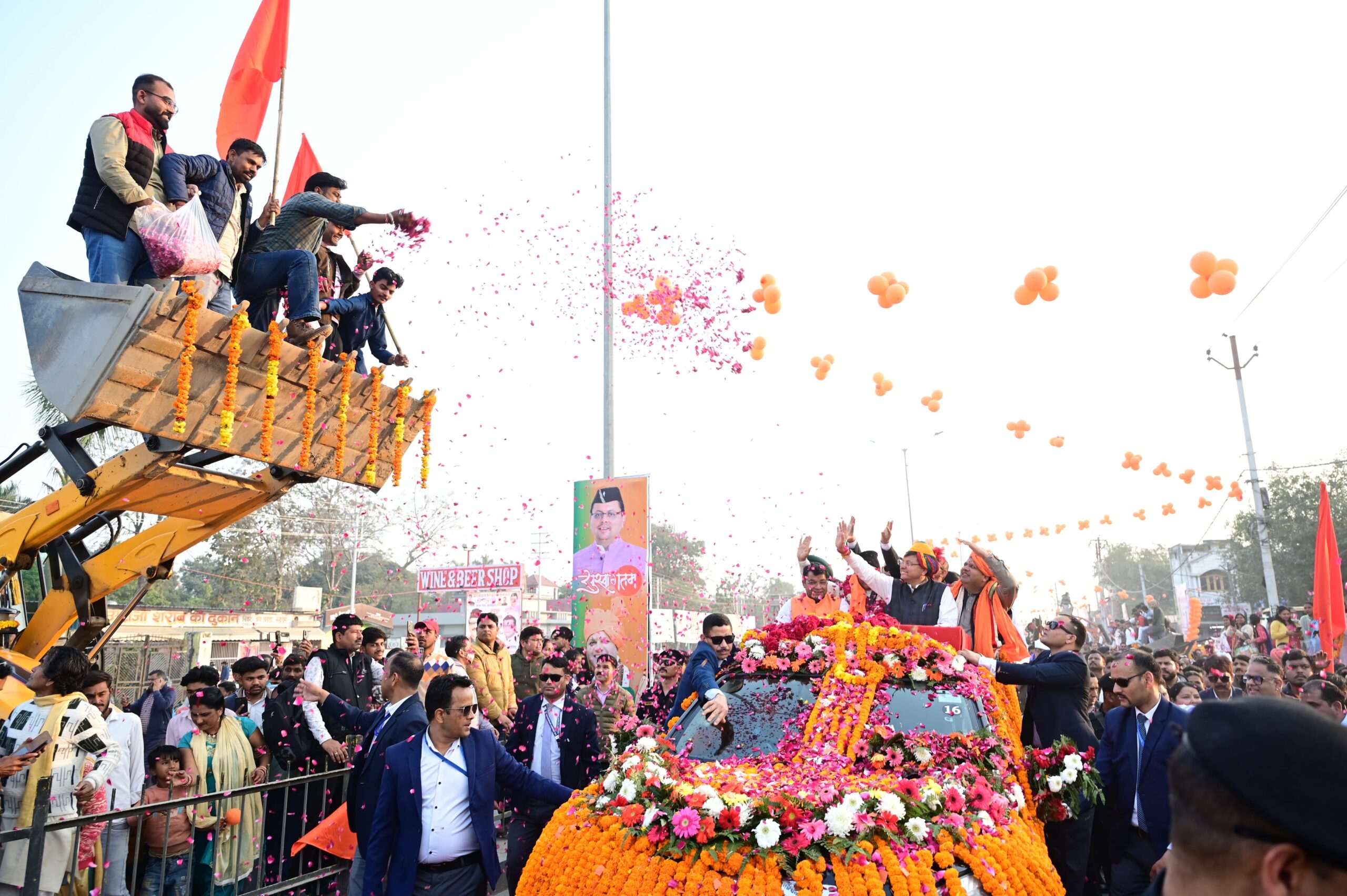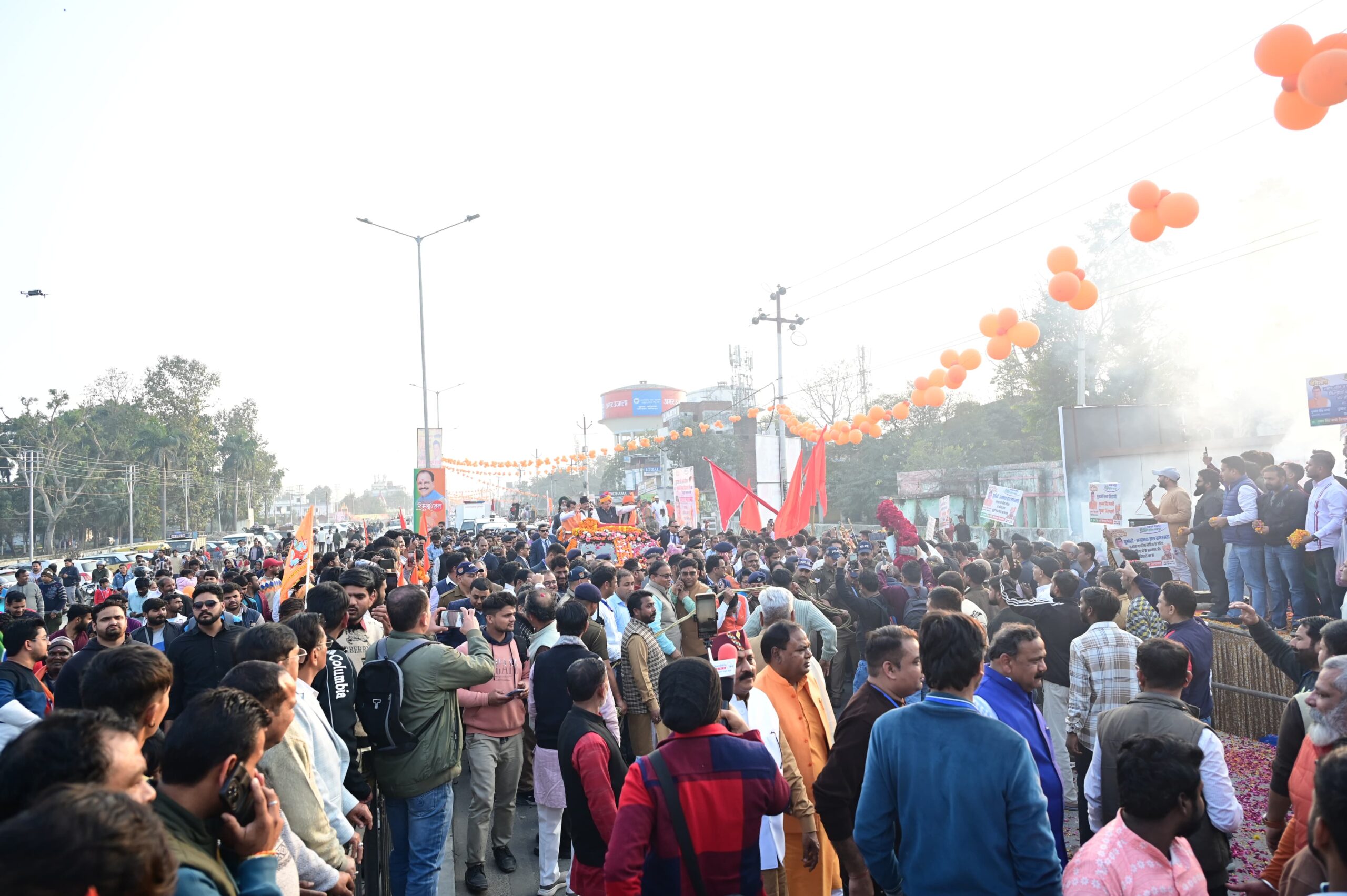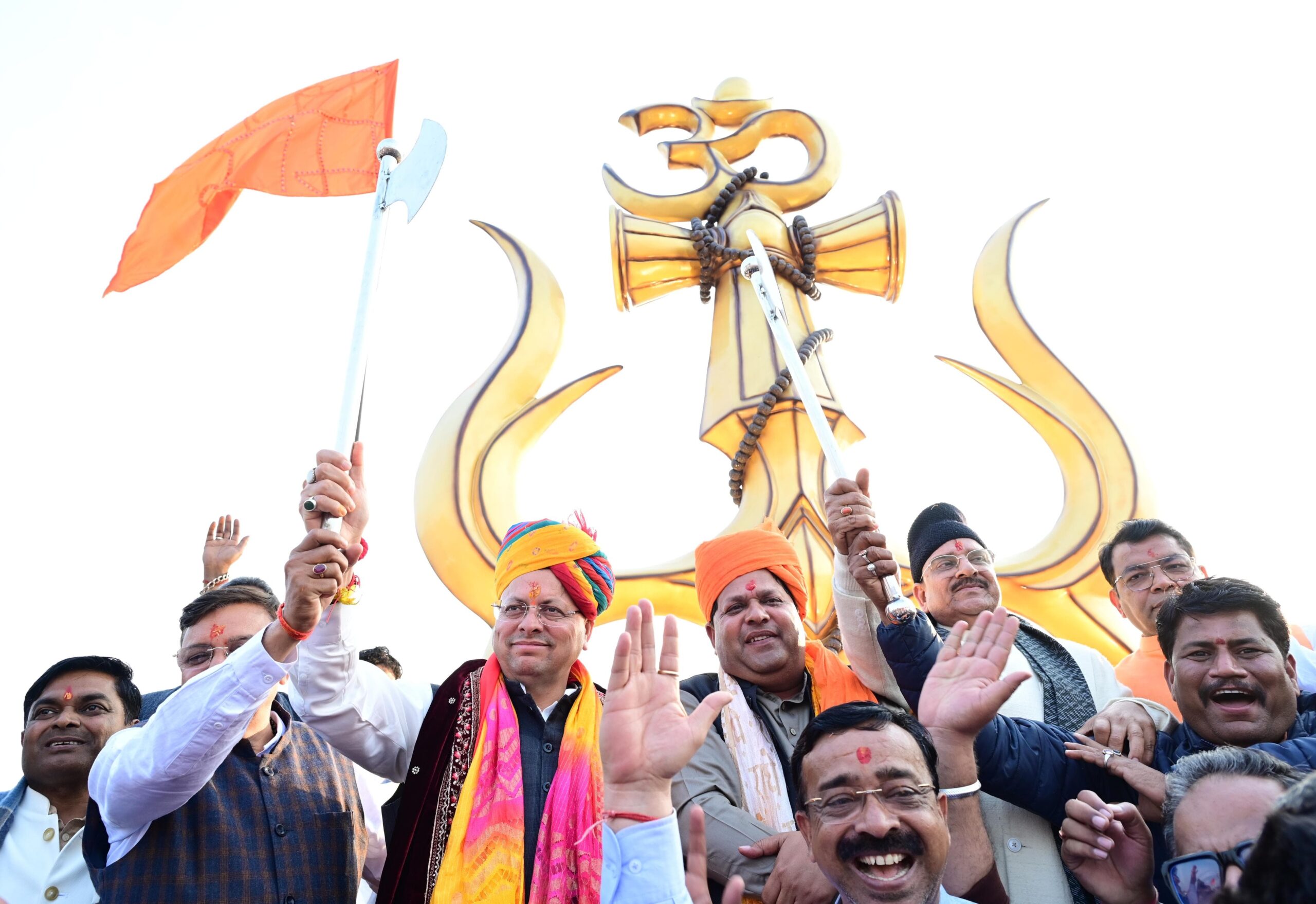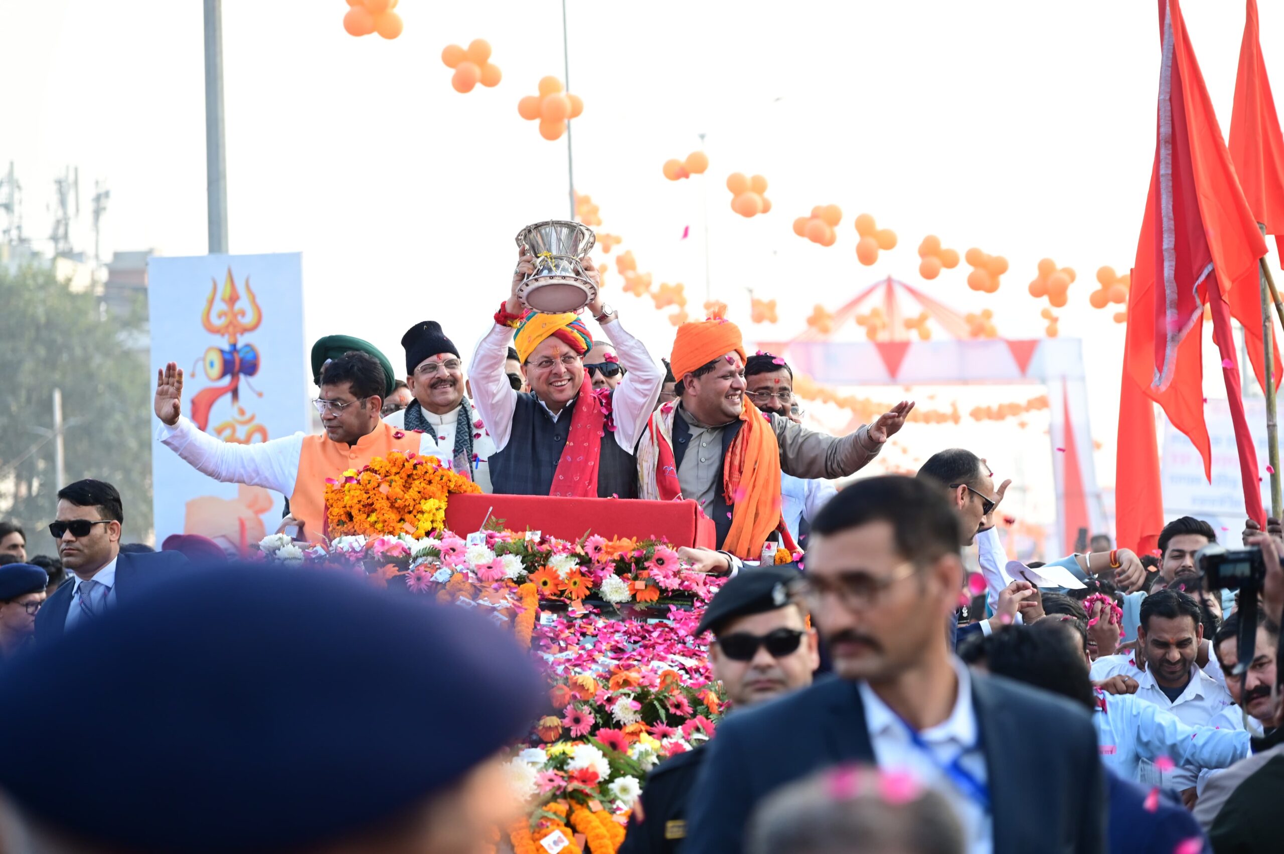 इससे पूर्व माननीय मुख्यमंत्री श्री धामी ने त्रिशूल चौक का लोकार्पण किया उससे पूर्व उन्होंने कांवरियों की पैर पखारे एवं उनको अंगवस्त्र व पुष्प माला भेंट कर उनका अभिवादन किया, इसके उपरांत त्रिशूल चौक से सरस मेला कार्यक्रम स्थल गांधी पार्क तक आयोजित शिव बारात में प्रतिभाग किया। शिव बारात में माननीय मुख्यमंत्री का विभिन्न संगठनों व जनता द्वारा फूलमाला,पुष्पवर्षा कर भव्य स्वागत किया।