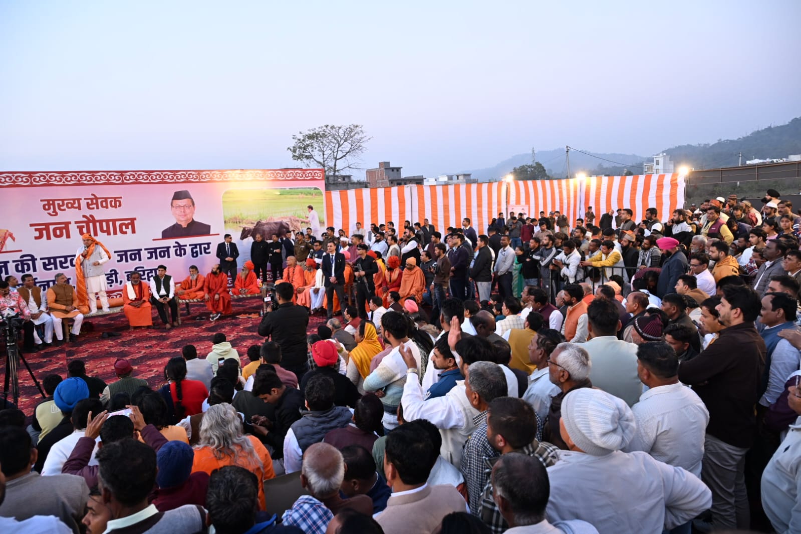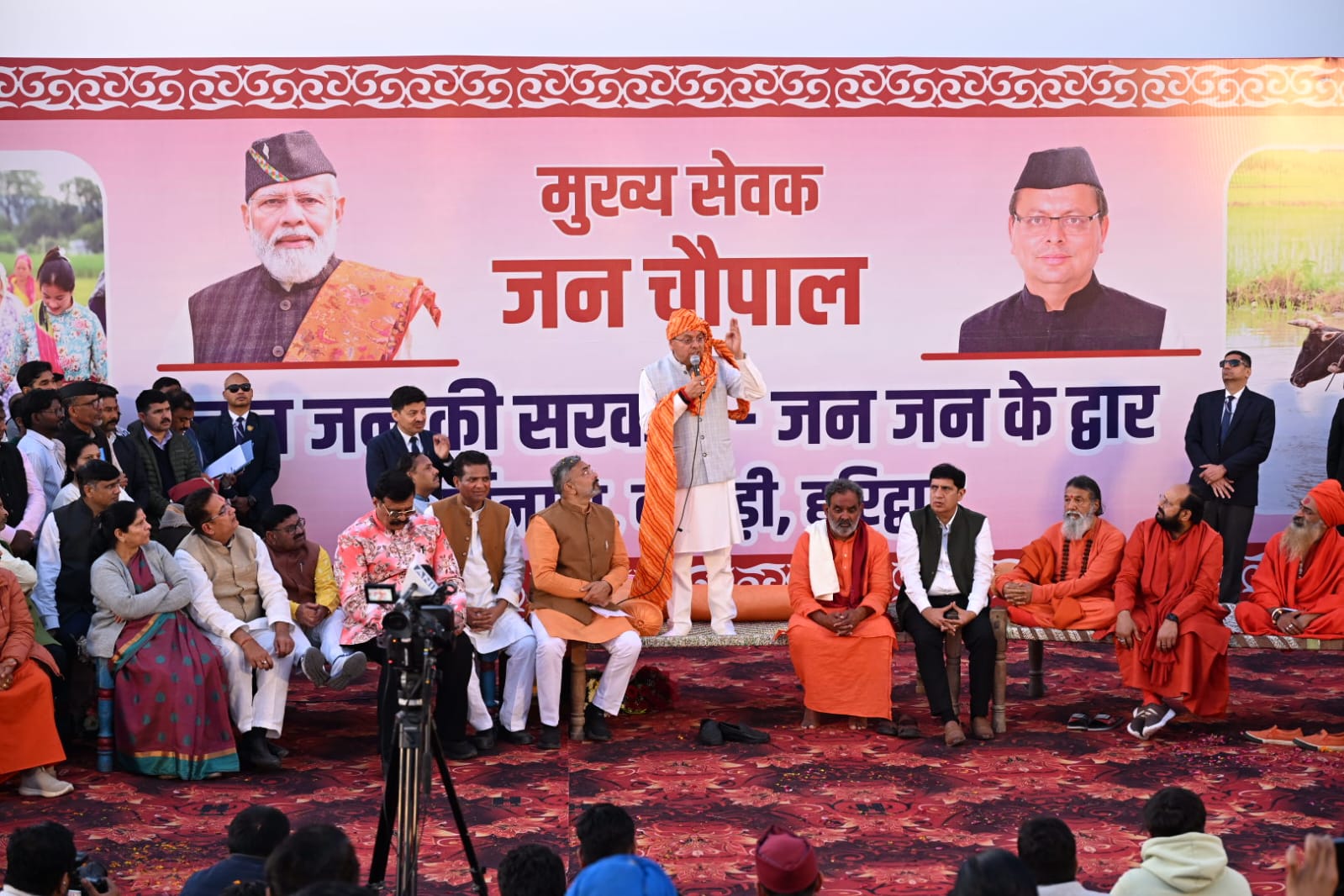 *हरिद्वार । मुख्यमंत्री श्री पुष्कर सिंह धामी आज हरिद्वार ग्रामीण क्षेत्र के ग्राम आर्यनगर (गाजीवाली), श्यामपुर कांगड़ी में आयोजित “जन-जन की सरकार, जन-जन के द्वार” अभियान के अंतर्गत आयोजित मुख्य सेवक जन चौपाल कार्यक्रम में सम्मिलित हुए। जन चौपाल में मुख्यमंत्री पुष्कर सिंह धामी ने परंपरागत ढंग से खाट पर जनता के बीच बैठकर सीधे संवाद किया और स्पष्ट संदेश दिया कि राज्य के समग्र विकास तथा जन समस्याओं के प्रभावी समाधान के लिये सरकार स्वयं जनता के द्वार पर जाकर अपनी सेवाएं उपलब्ध करा रही है।