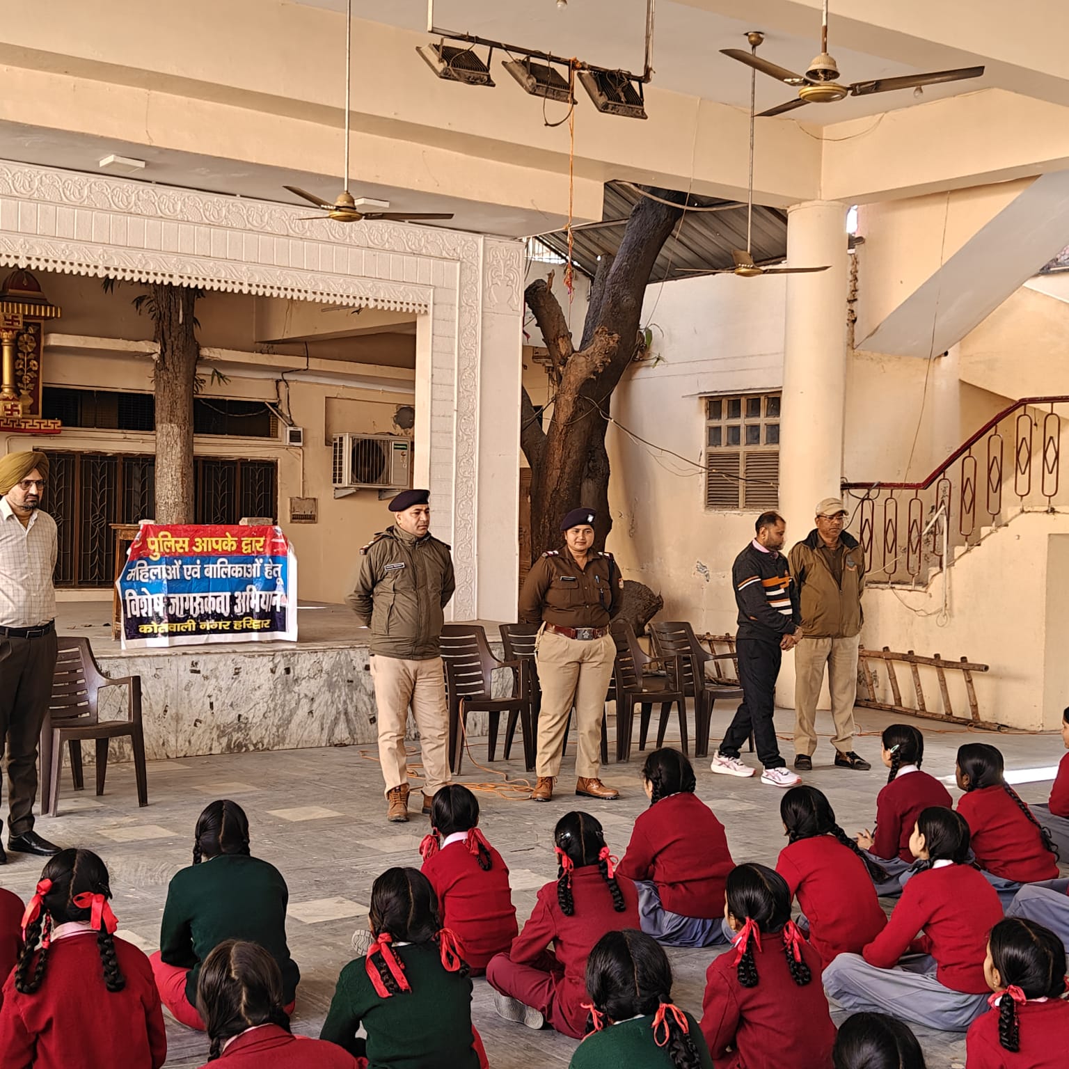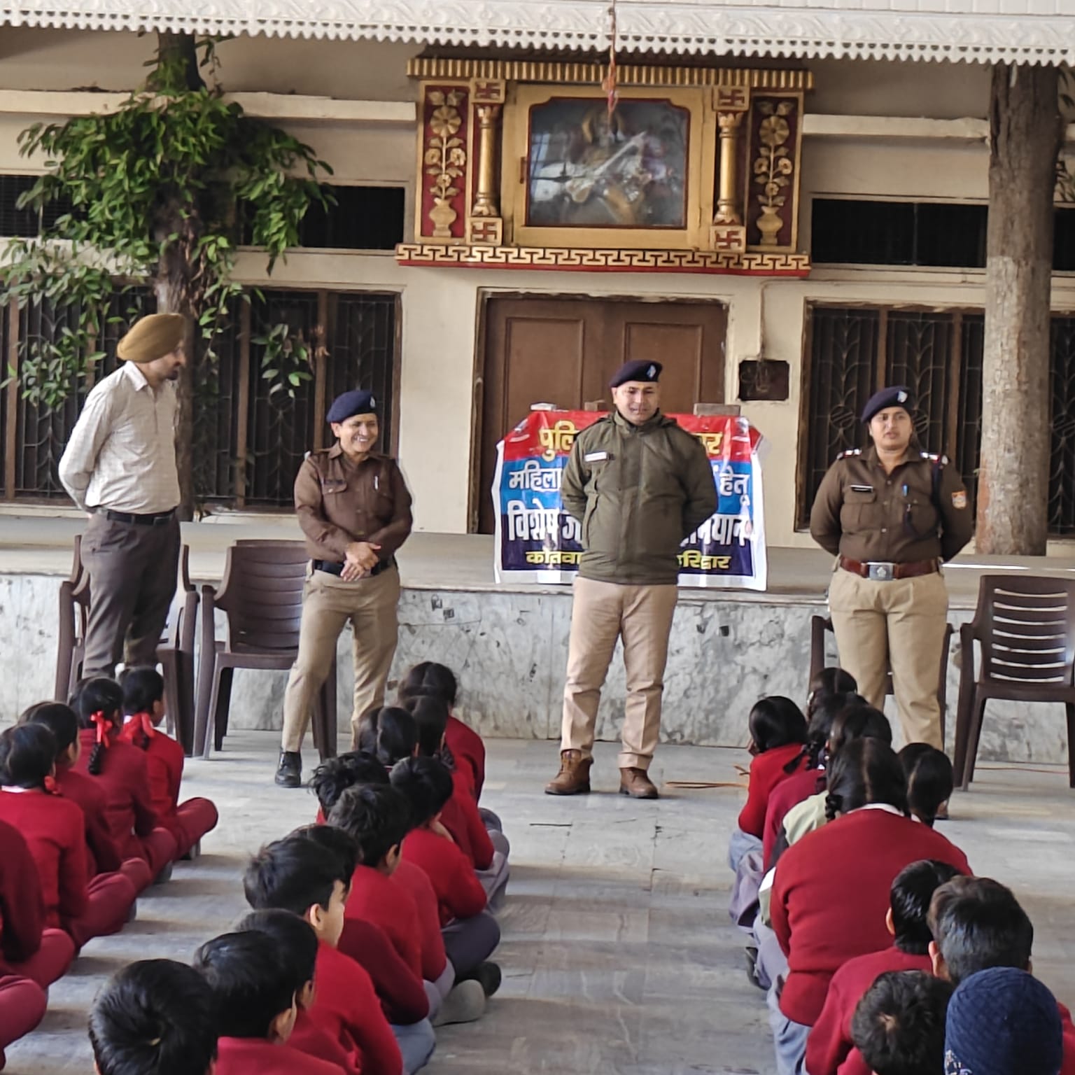 जनपद हरिद्वार पुलिस द्वारा दिनाक- 26.01.2026 से 31.02.2026 तक चलाये जा रहे जागरुकता अभियान *”पुलिस आपके द्वार”* कार्यक्रम के अन्तर्गत वरिष्ठ पुलिस अधीक्षक जनपद हरिद्वार के निर्देश में कोतवाली नगर पुलिस टीम द्वारा निर्धन निकेतन विद्यालय खड़खड़ी हरिद्वार में महिलाओं एवं बालिकाओं को महिला सुरक्षा से संबंधित विभिन्न कानूनों, आपातकालीन हेल्पलाइन नंबर 112,महिला हेल्पलाइन 1090/1091 साइबर अपराध से बचाव, छेड़छाड़,घरेलू हिंसा* तथा किसी भी आपात स्थिति में त्वरित सहायता प्राप्त करने की प्रक्रिया के बारे में विस्तृत जानकारी दी गई।